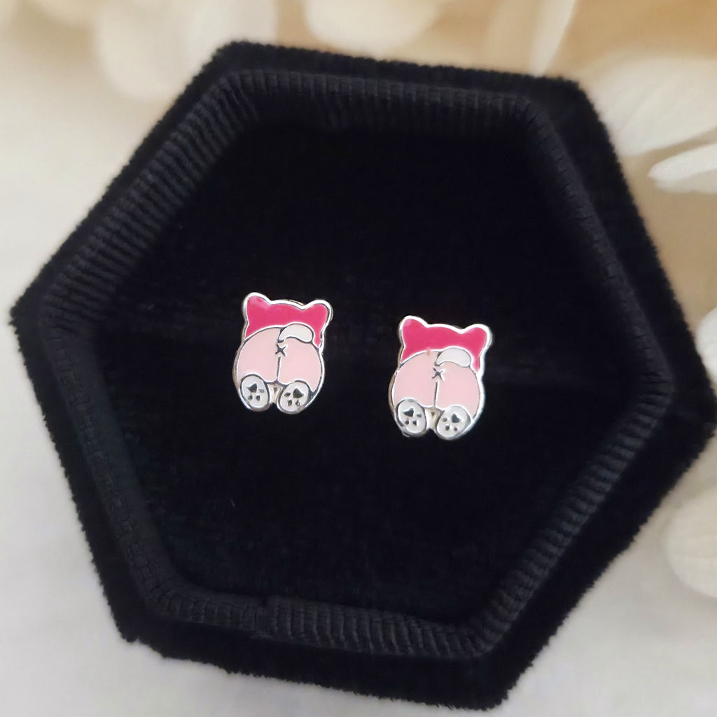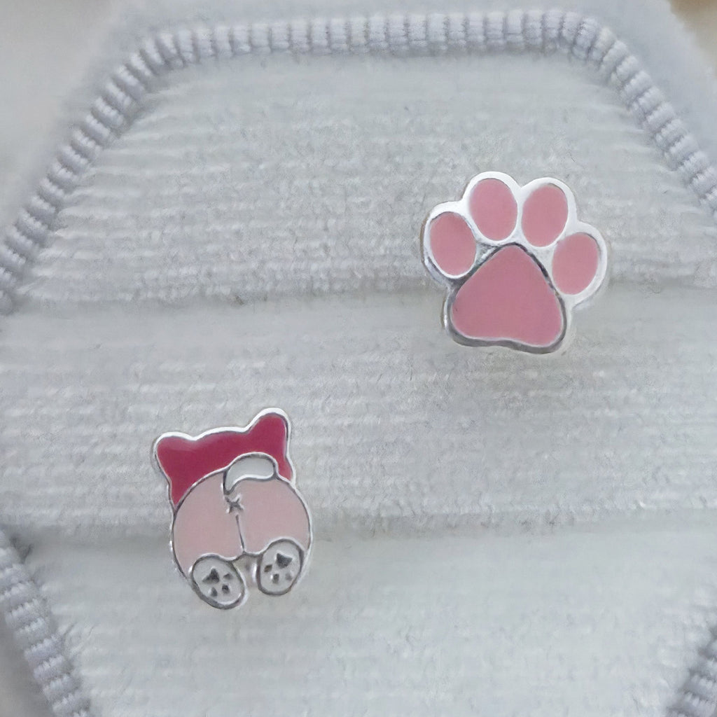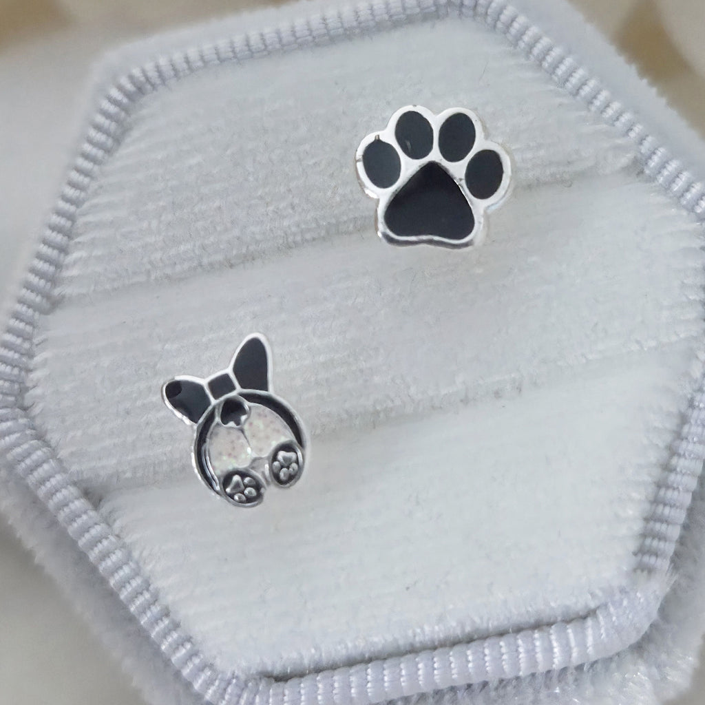 Mismatched Pink French Bulldog & Paw Stud Earrings in 925 Sterling Silver – Solid Silver Pet Lover Jewelry with Enamel