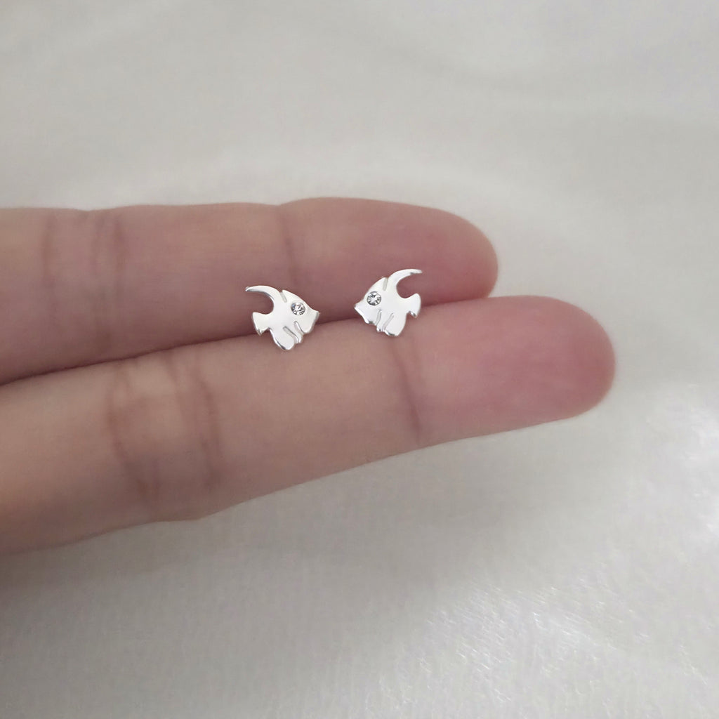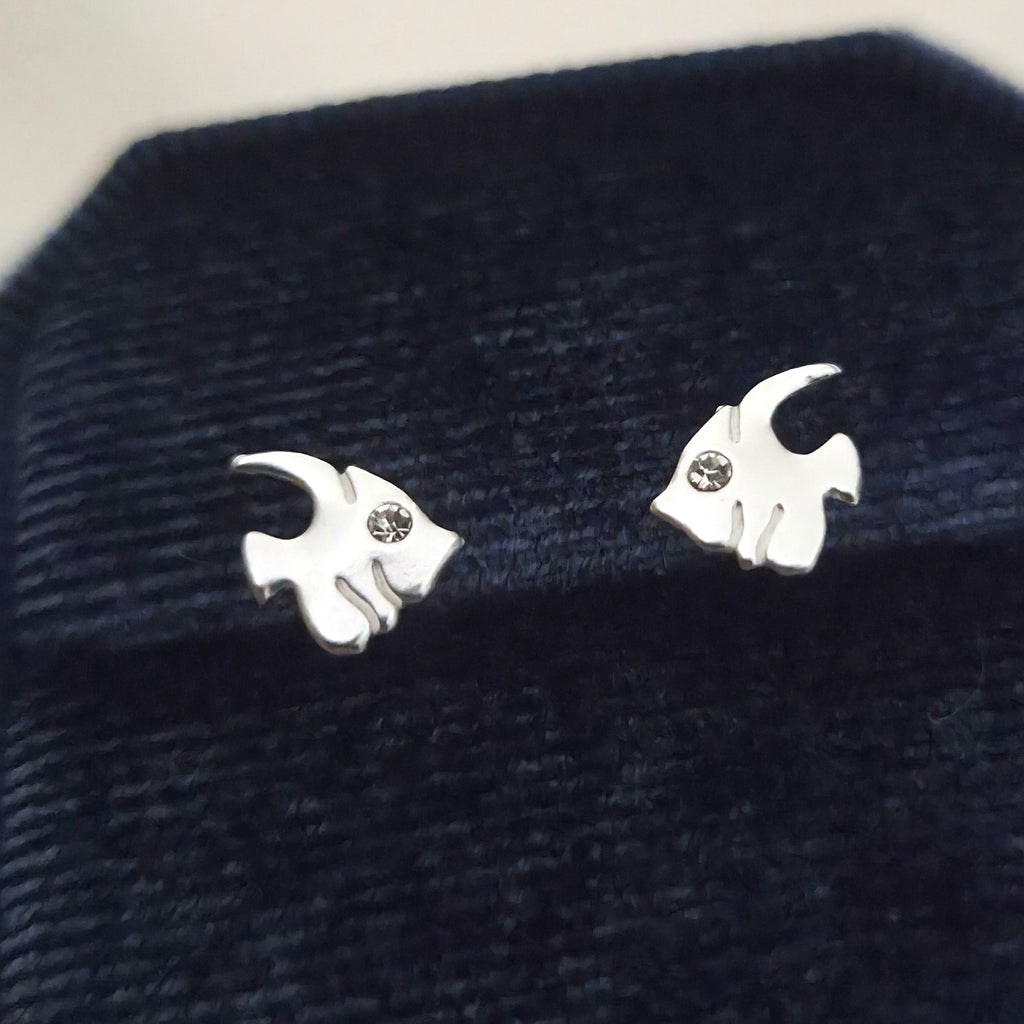 Mini 925 Sterling Silver Fish Stud Earrings – Minimalist Solid Silver Fish Studs – Cute Ocean Sea Animal Jewelry Gift