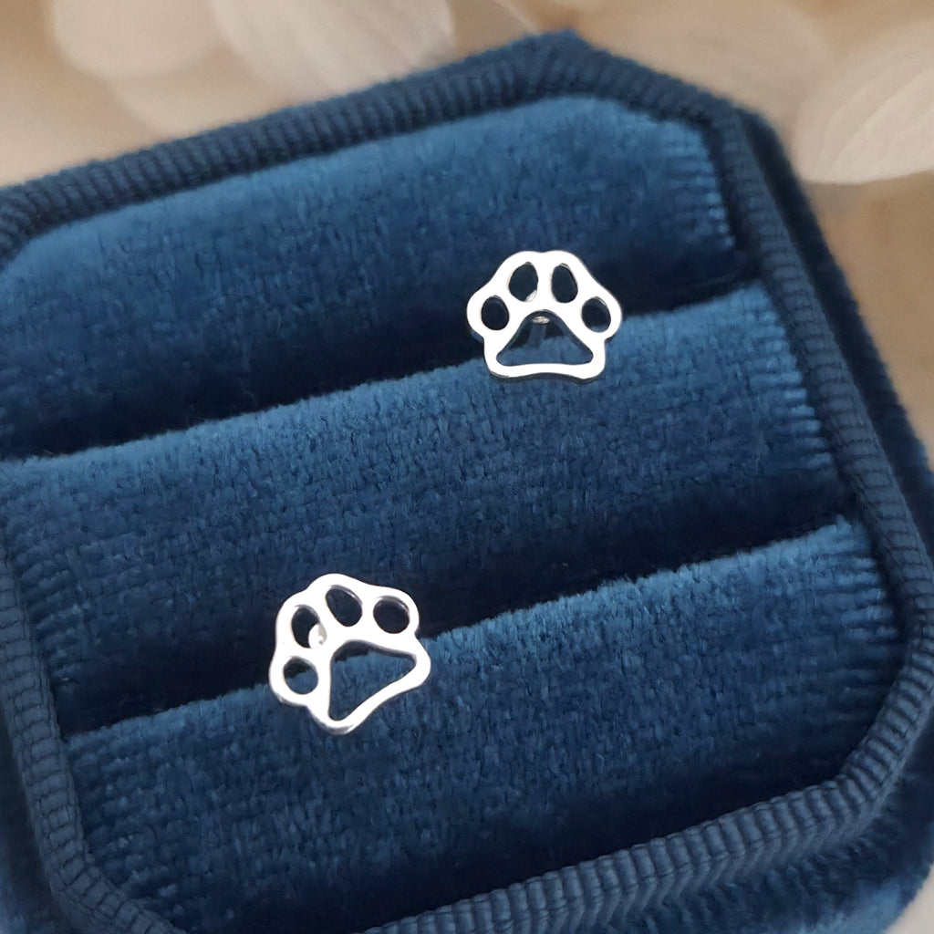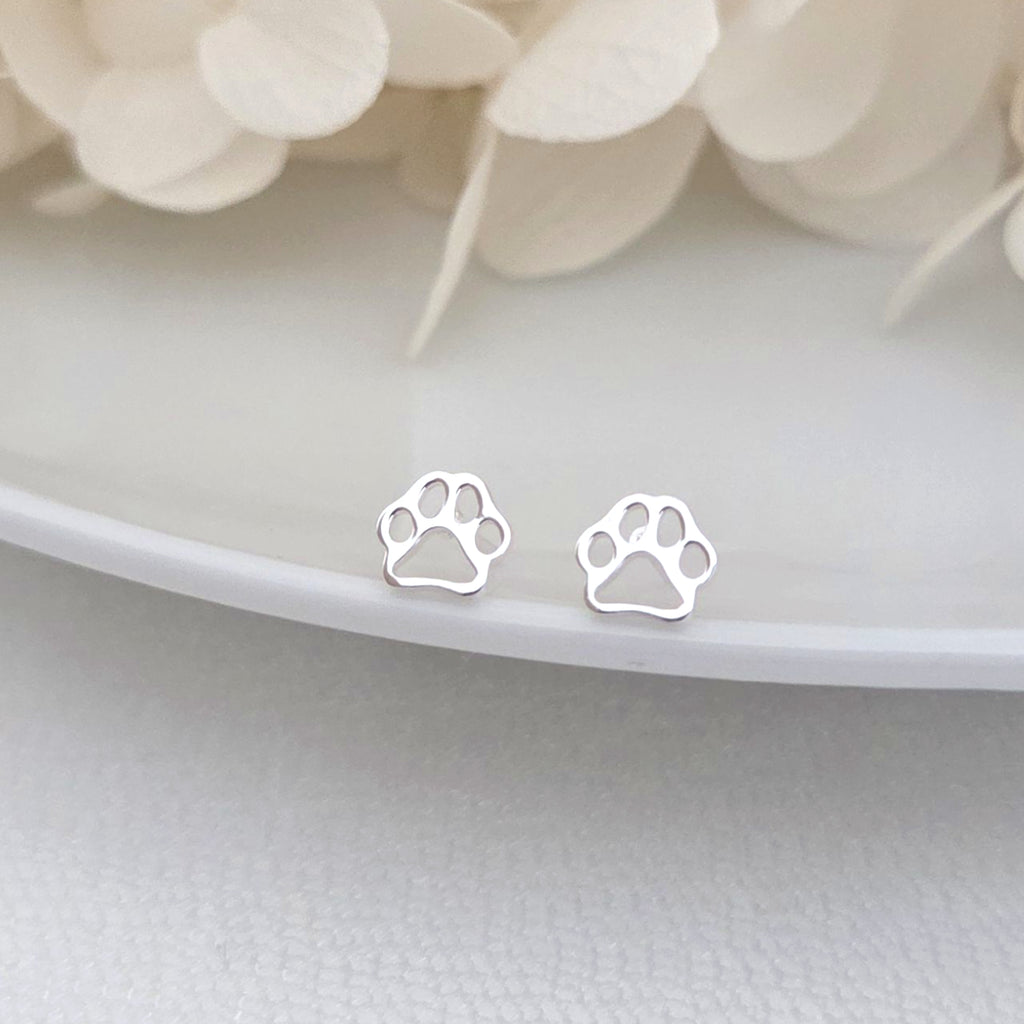 925 Sterling Silver Dog Paw Print Stud Earrings – Minimalist Solid Silver Pet Lover Earrings – Cute Animal Jewelry Gift