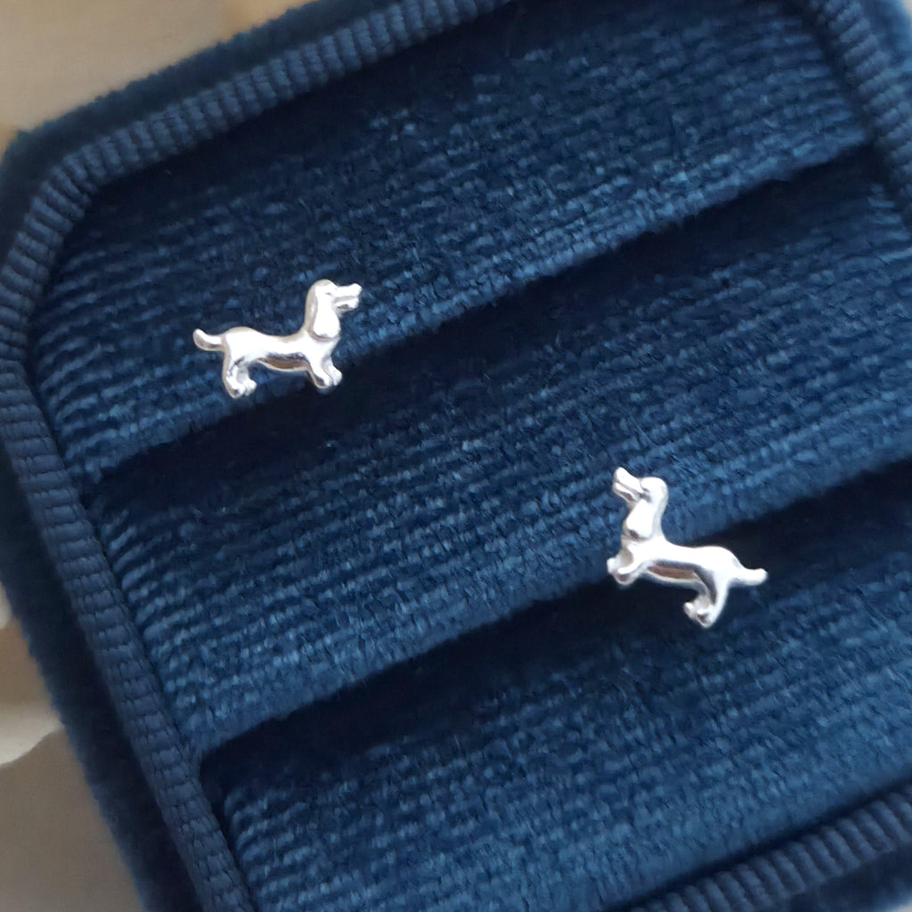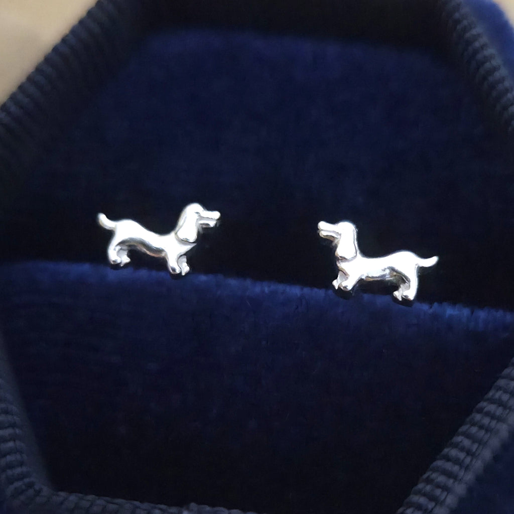 Mini 925 Sterling Silver Dachshund Dog Stud Earrings – Solid Silver Puppy Studs – Minimalist Pet Lover Jewelry