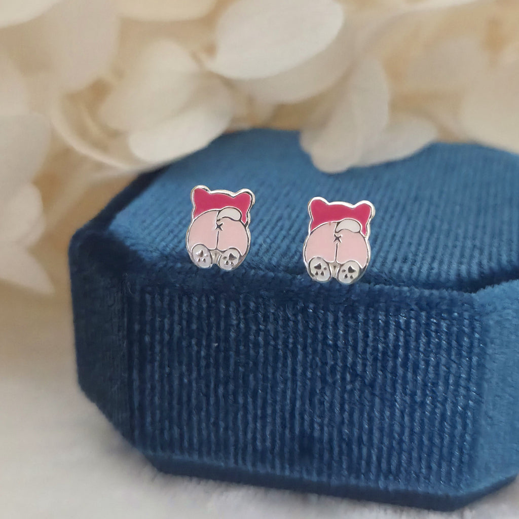 Pink Dog Stud Earrings in 925 Sterling Silver – Solid Silver Pink Puppy Studs with Enamel – Cute Pet Lover Jewelry Gift