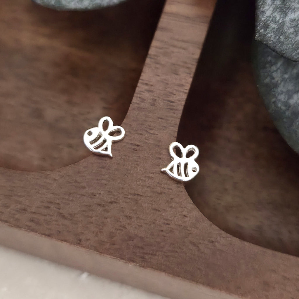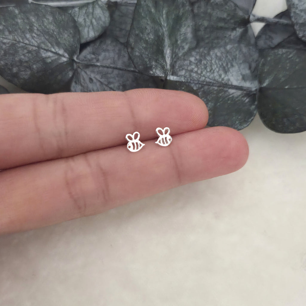 Tiny 925 Sterling Silver Bee Stud Earrings – Silver Cute Bee Studs – Minimalist Animal Jewelry