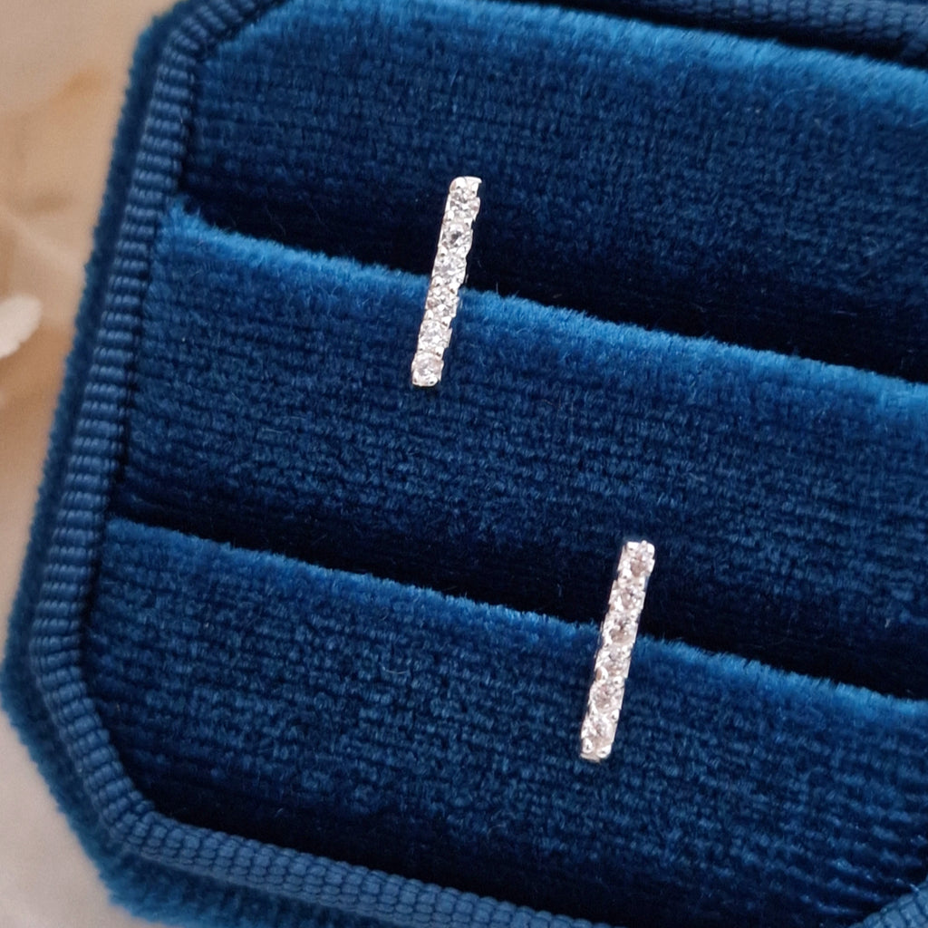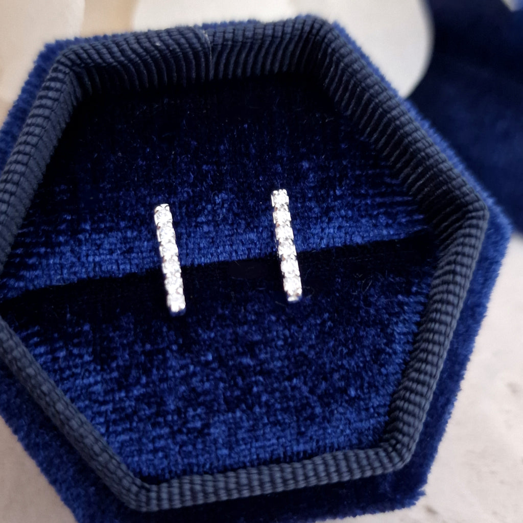 925 Sterling Silver Bar Stud Earrings – Bar Studs in Solid Silver with White CZ Cubic Zirconia