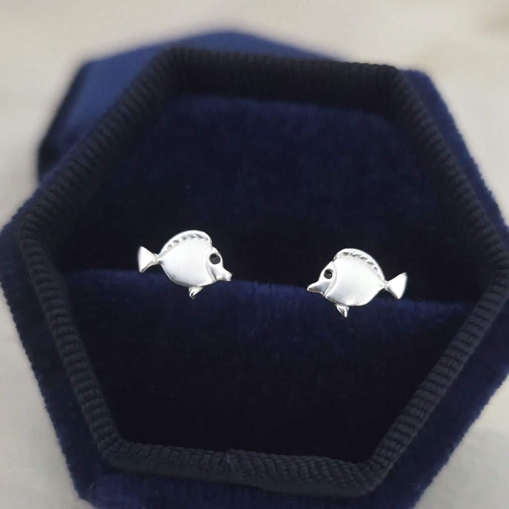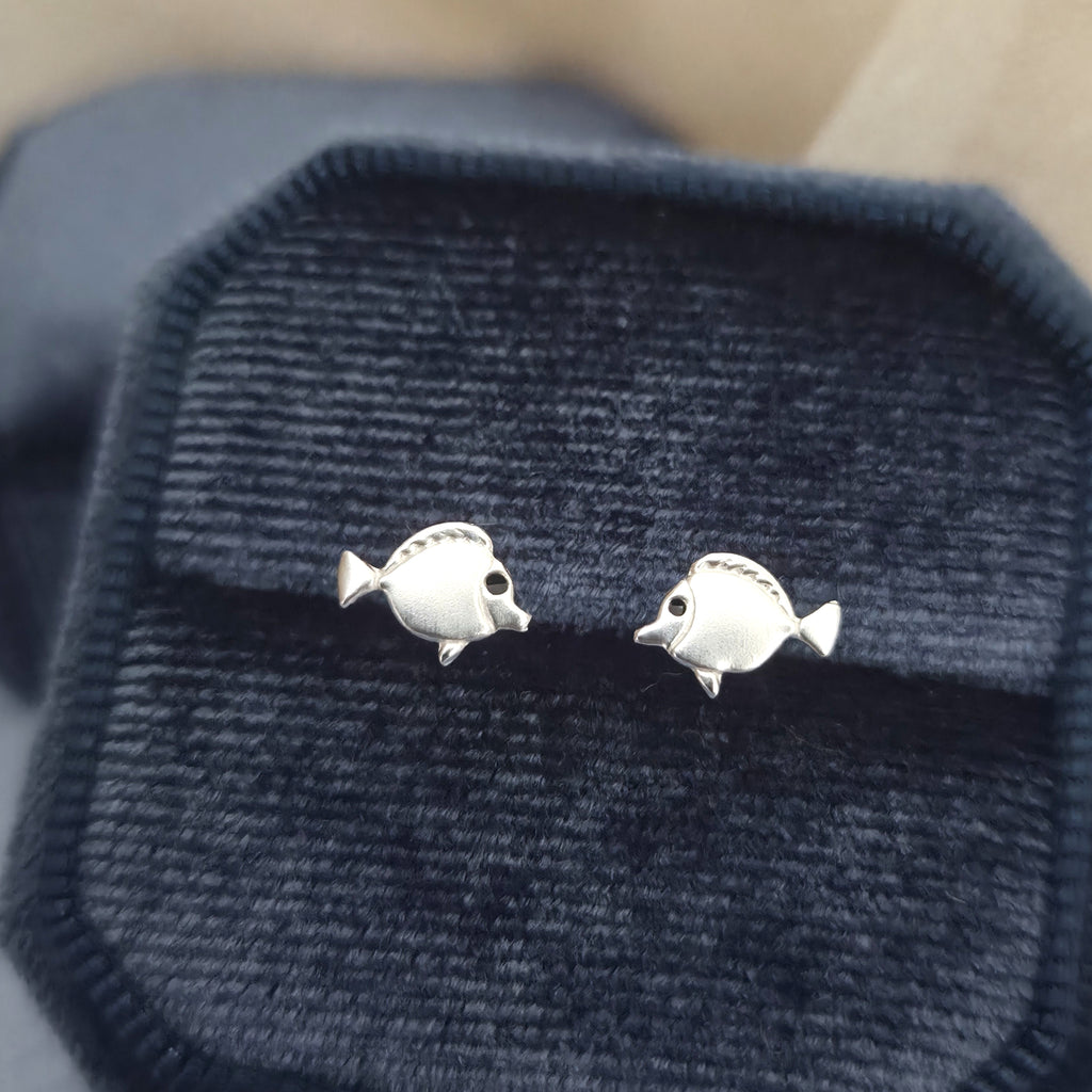 Tiny 925 Sterling Silver Fish Stud Earrings – Minimalist Solid Silver Tropical Fish Studs – Cute Sea Animal Jewelry Gift for Her