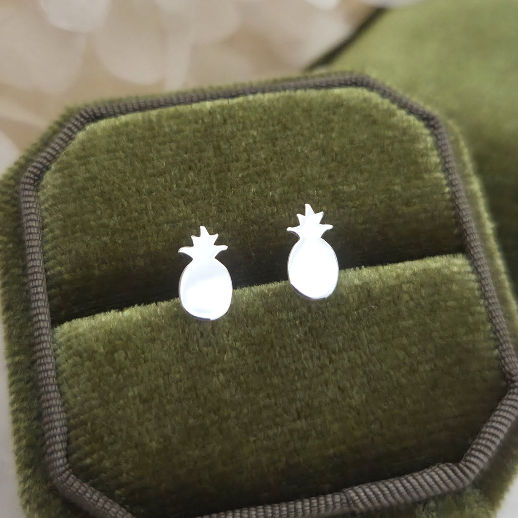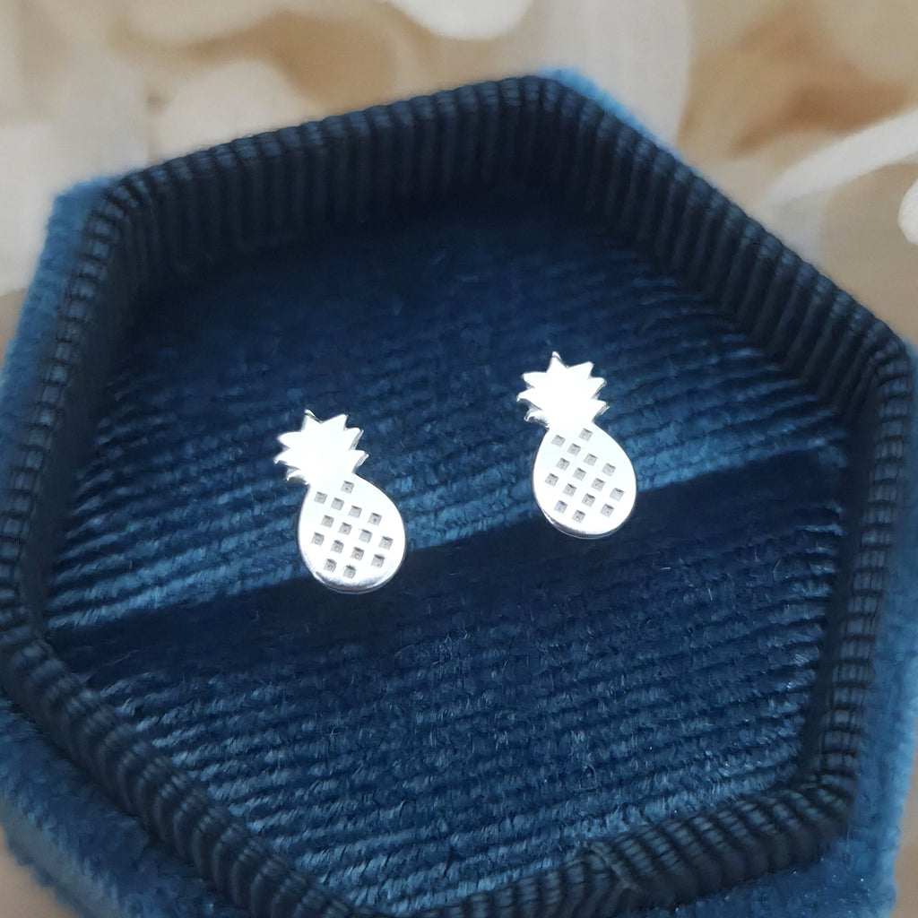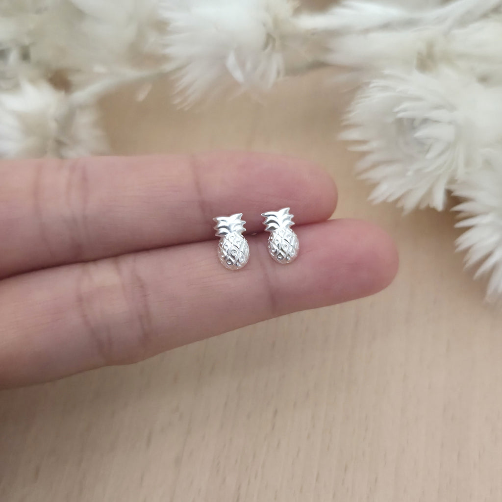 Simple 925 Sterling Silver Pineapple Stud Earrings – Solid Silver Pineapple Fruit Earrings – Tropical Summer Beach Jewelry