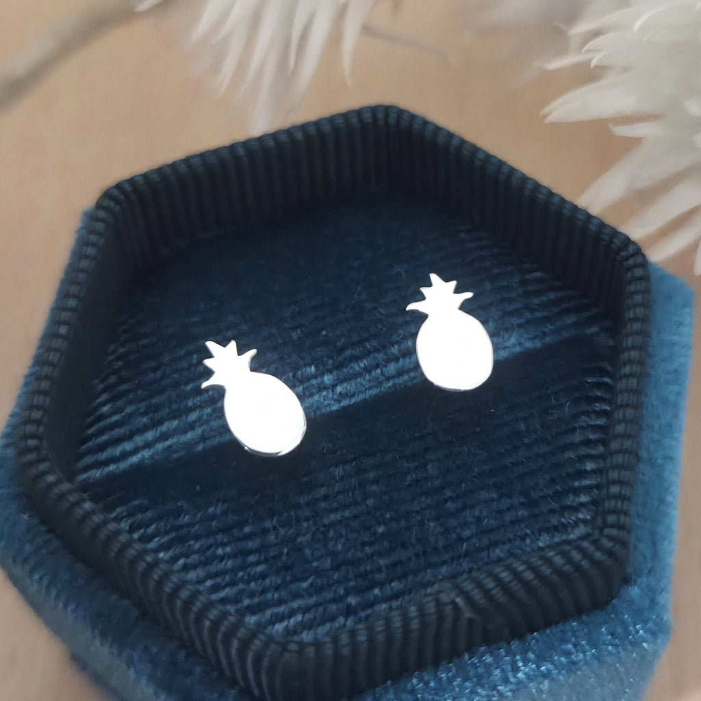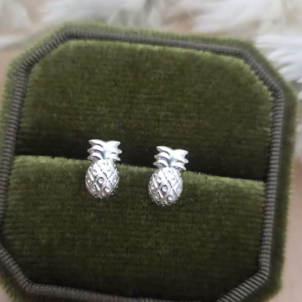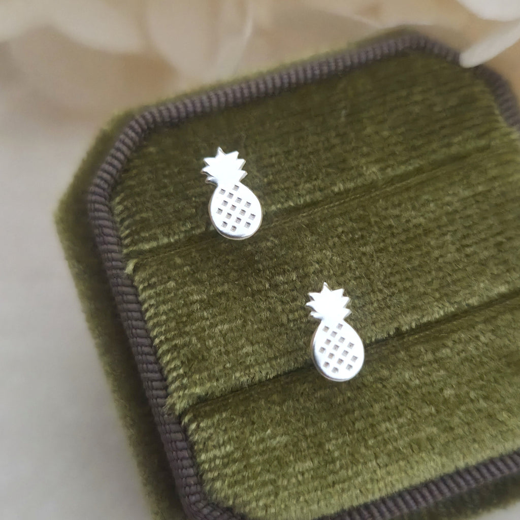 Simple 925 Sterling Silver Pineapple Stud Earrings – Solid Silver Pineapple Fruit Earrings – Tropical Summer Beach Jewelry