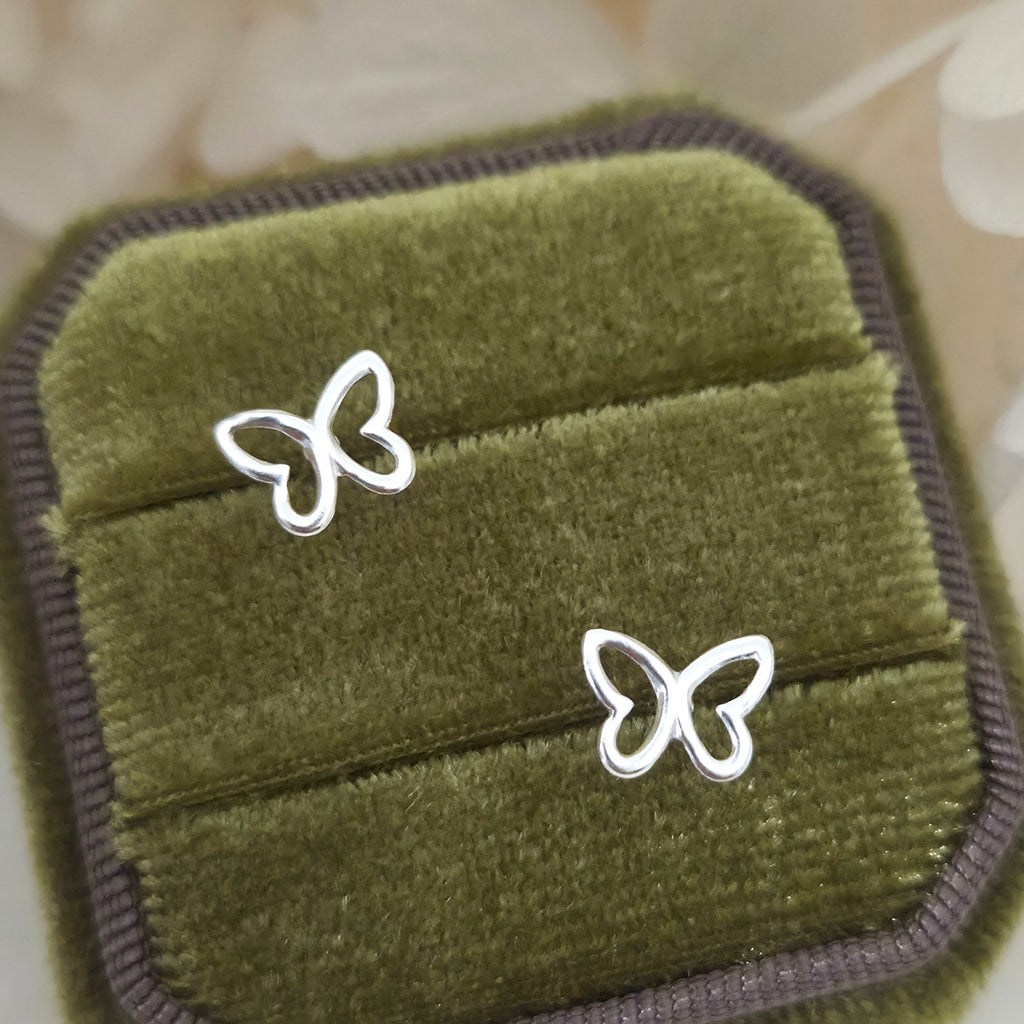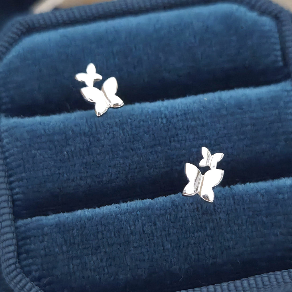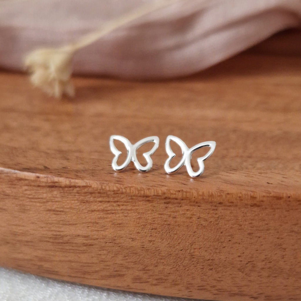 Tiny 925 Sterling Silver Butterfly Stud Earrings – Delicate Minimal Butterfly Studs in Solid Silver