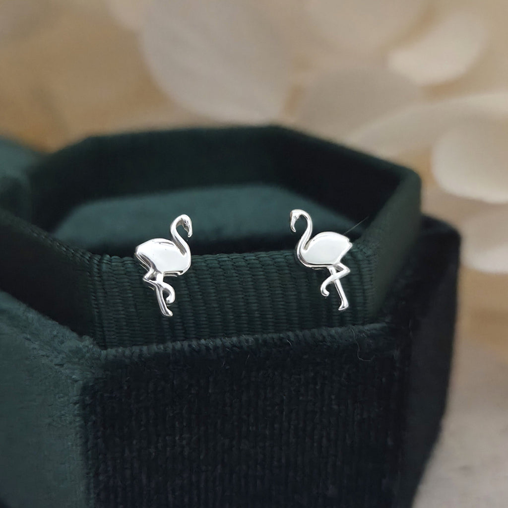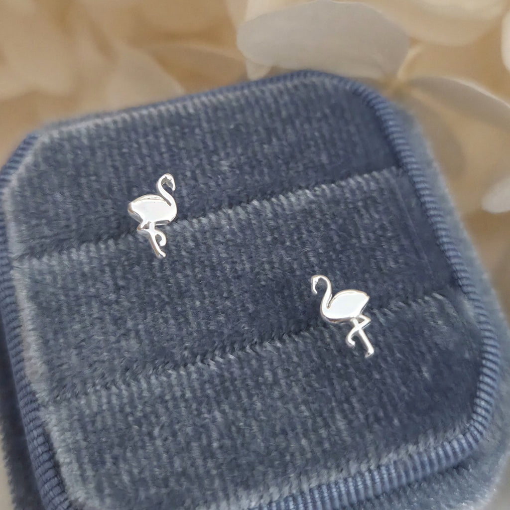 Tiny 925 Sterling Silver Flamingo Stud Earrings – Elegant Flamingo Studs in Solid Silver – Minimalist Animal Bird Jewelry