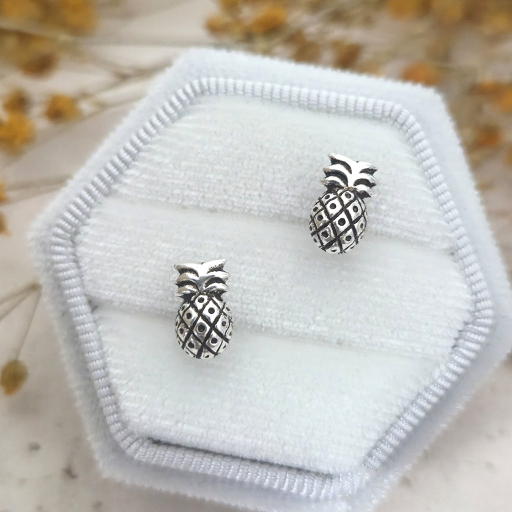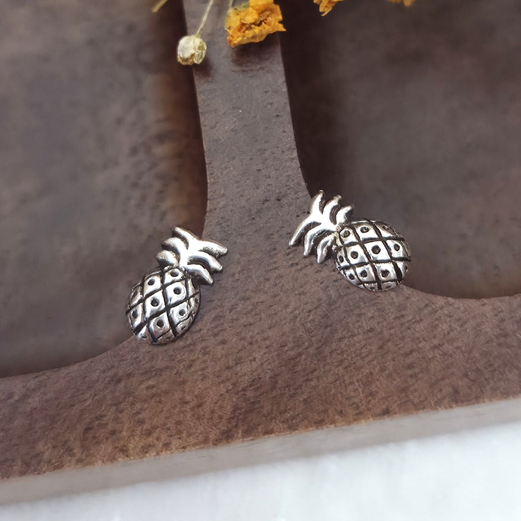 925 Sterling Silver Pineapple Stud Earrings – Oxidized Solid Silver Pineapple Fruit Earrings – Tropical Summer Beach Jewelry