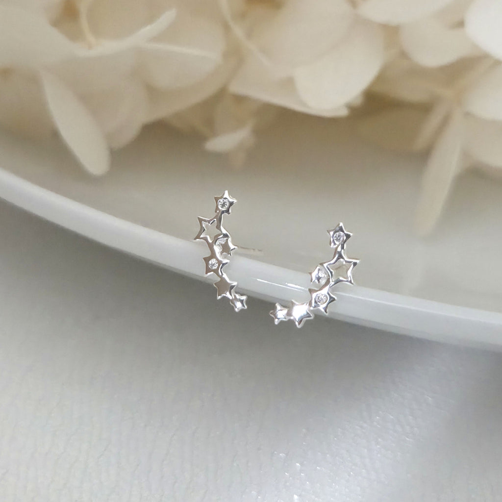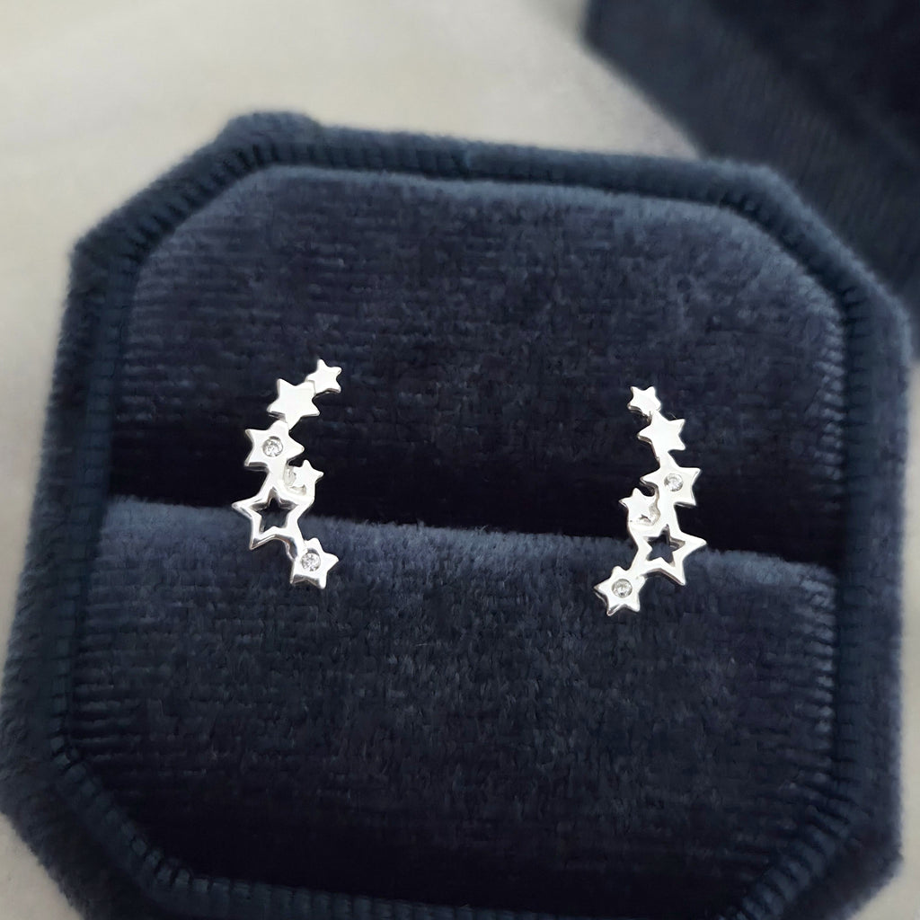 925 Sterling Silver Shooting Star Earrings – Celestial Studs with White Cubic Zirconia for a Dreamy Night Sky Inspired Look