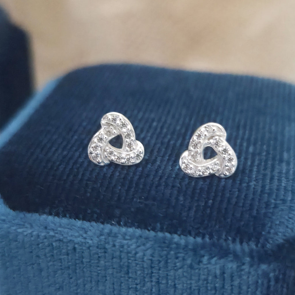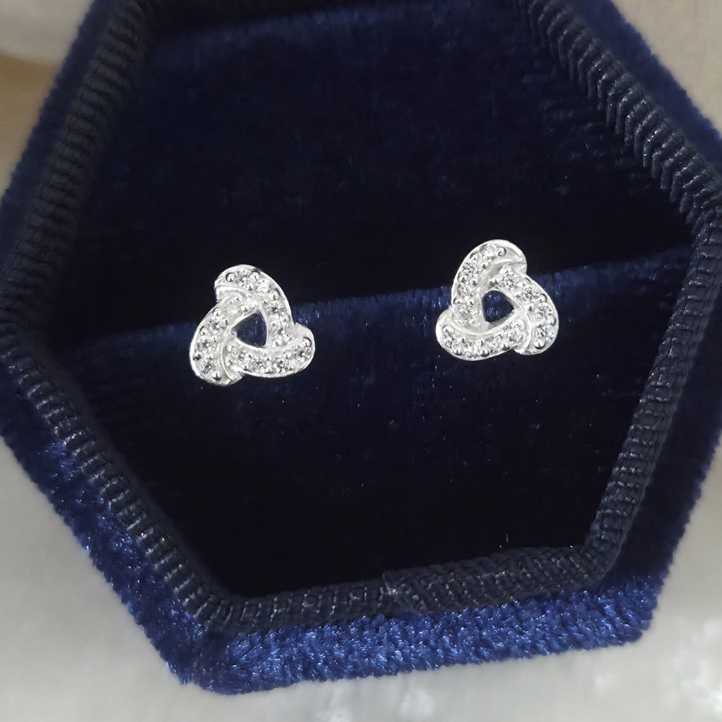 925 Sterling Silver Geometric Stud Earrings – Luxury Geometric Studs in Solid Silver with White CZ Cubic Zirconia