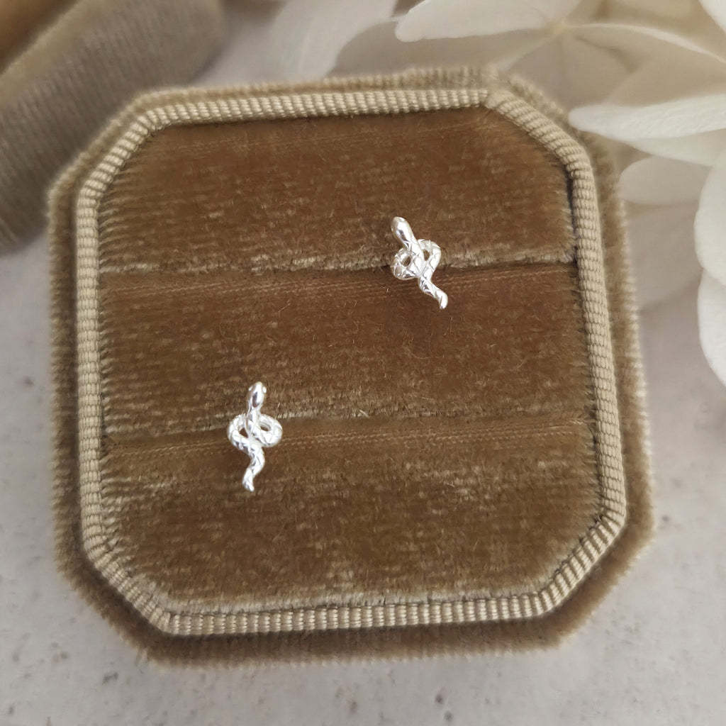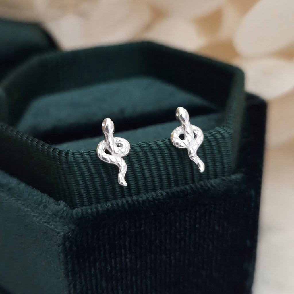 Tiny Snake 925 Sterling Silver Stud Earrings – Minimalist Snake Studs in Solid Silver – Elegant Animal Jewelry Gift for Her