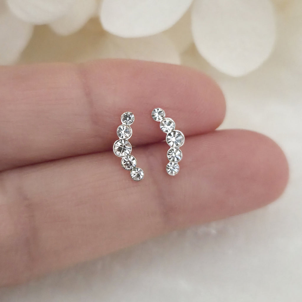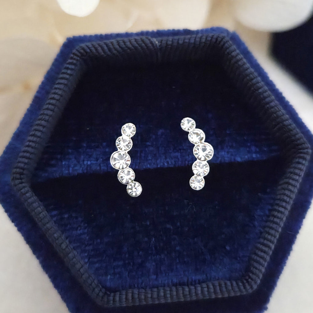 925 Sterling Silver Curved Stud Earrings – Solid Silver Curve Studs with White Crystals – Delicate Minimalist Gift for Her