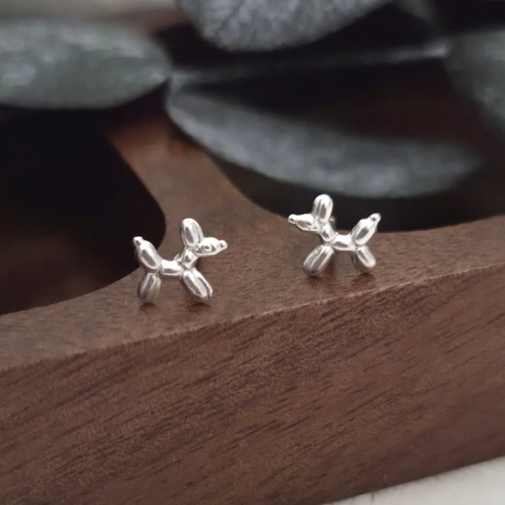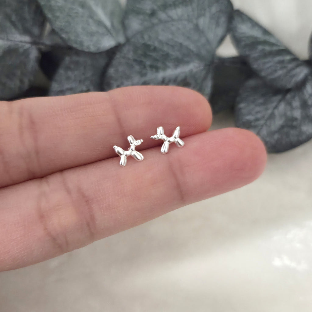 925 Sterling Silver Dog Stud Earrings – Tiny Balloon Dog Studs in Solid Silver – Cute Minimalist Earrings