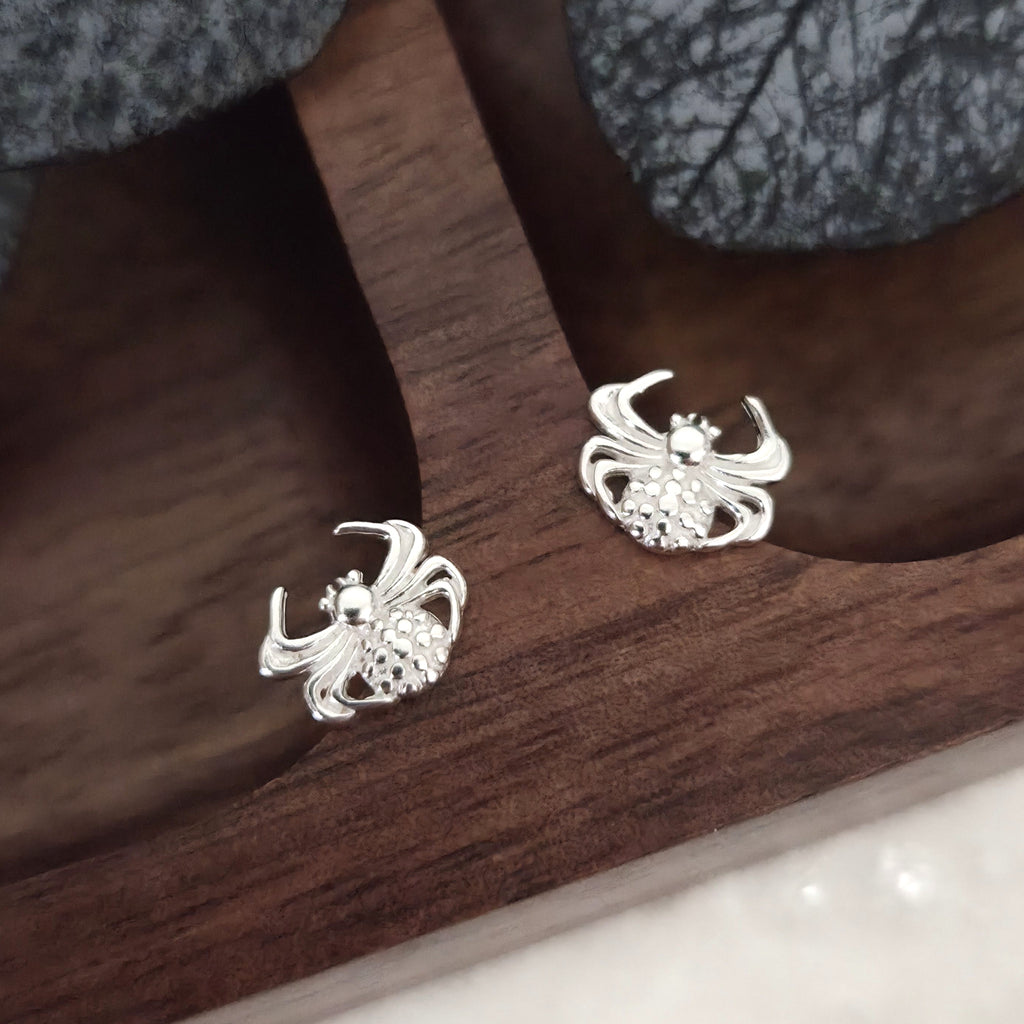 925 Sterling Silver Spider Stud Earrings – Solid Silver Halloween Jewelry – Elegant Tiny Spider Studs