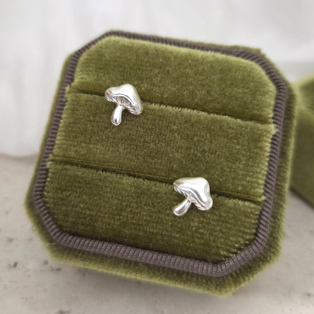 925 Sterling Silver Mushroom Stud Earrings – Cute Minimalist Mushroom Studs in Solid Silver – Jewelry Gift for Nature Lovers