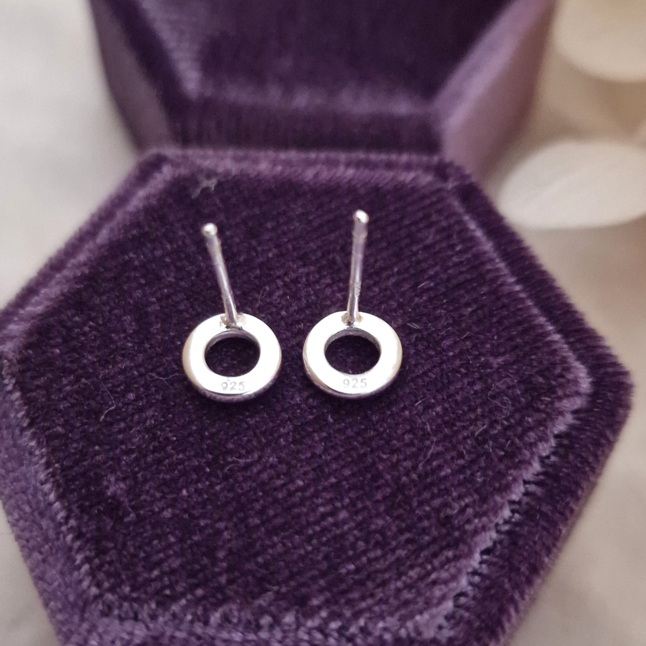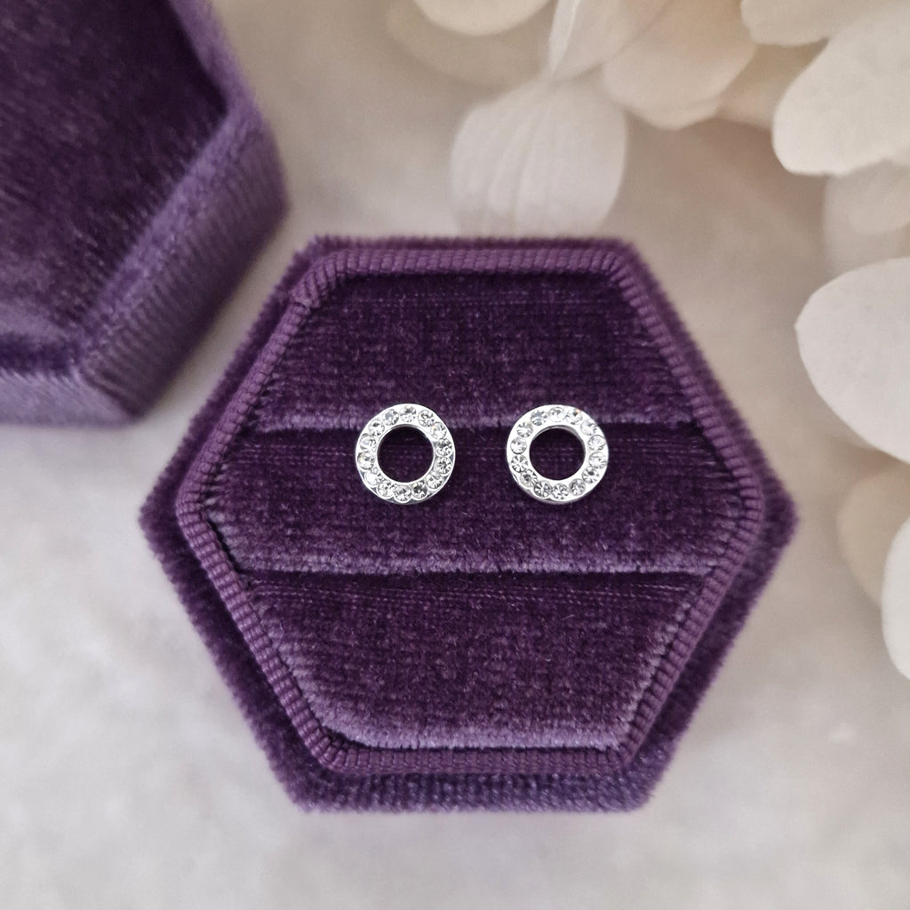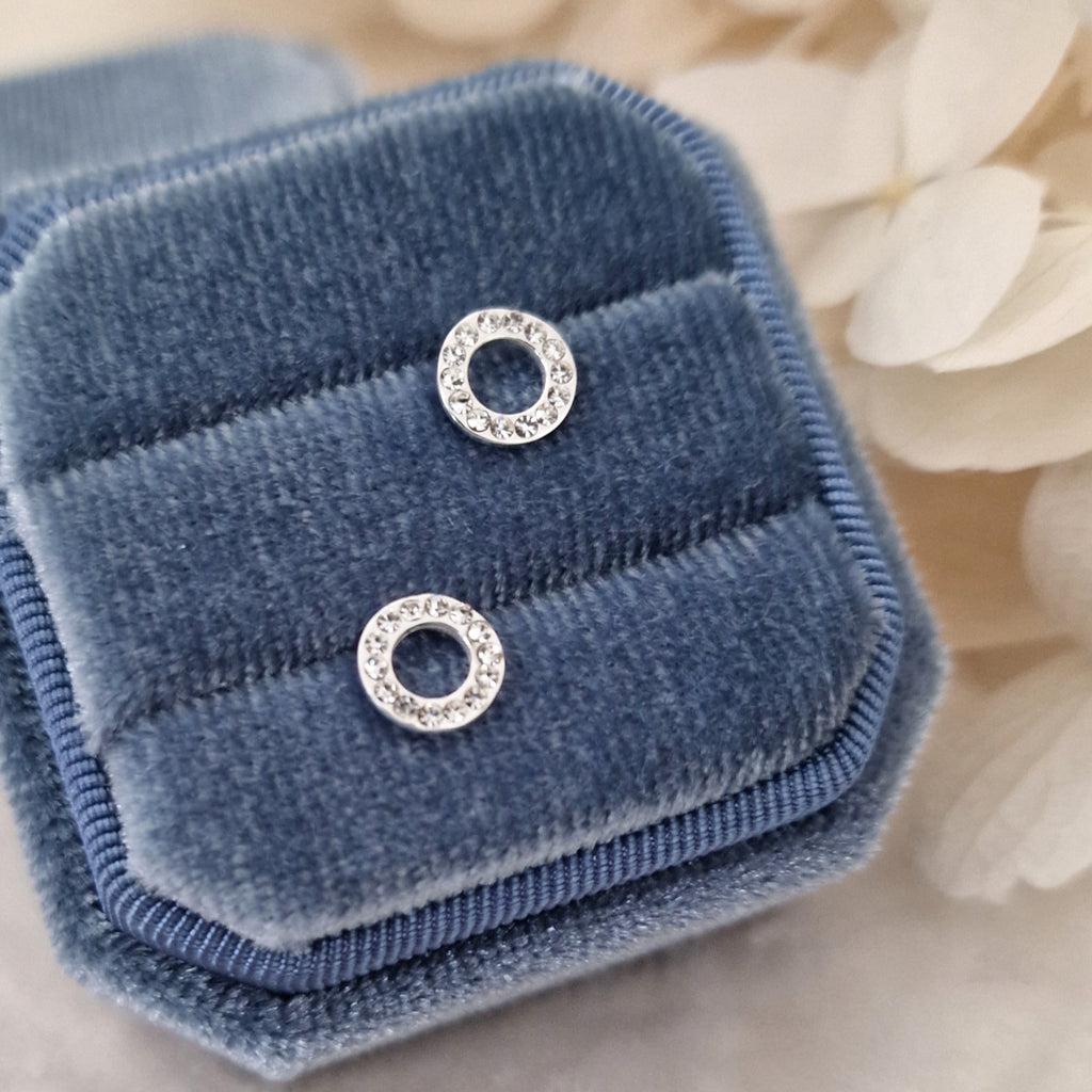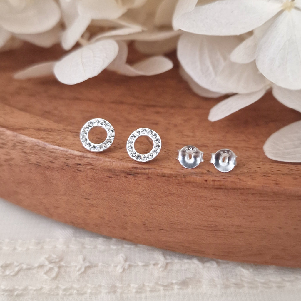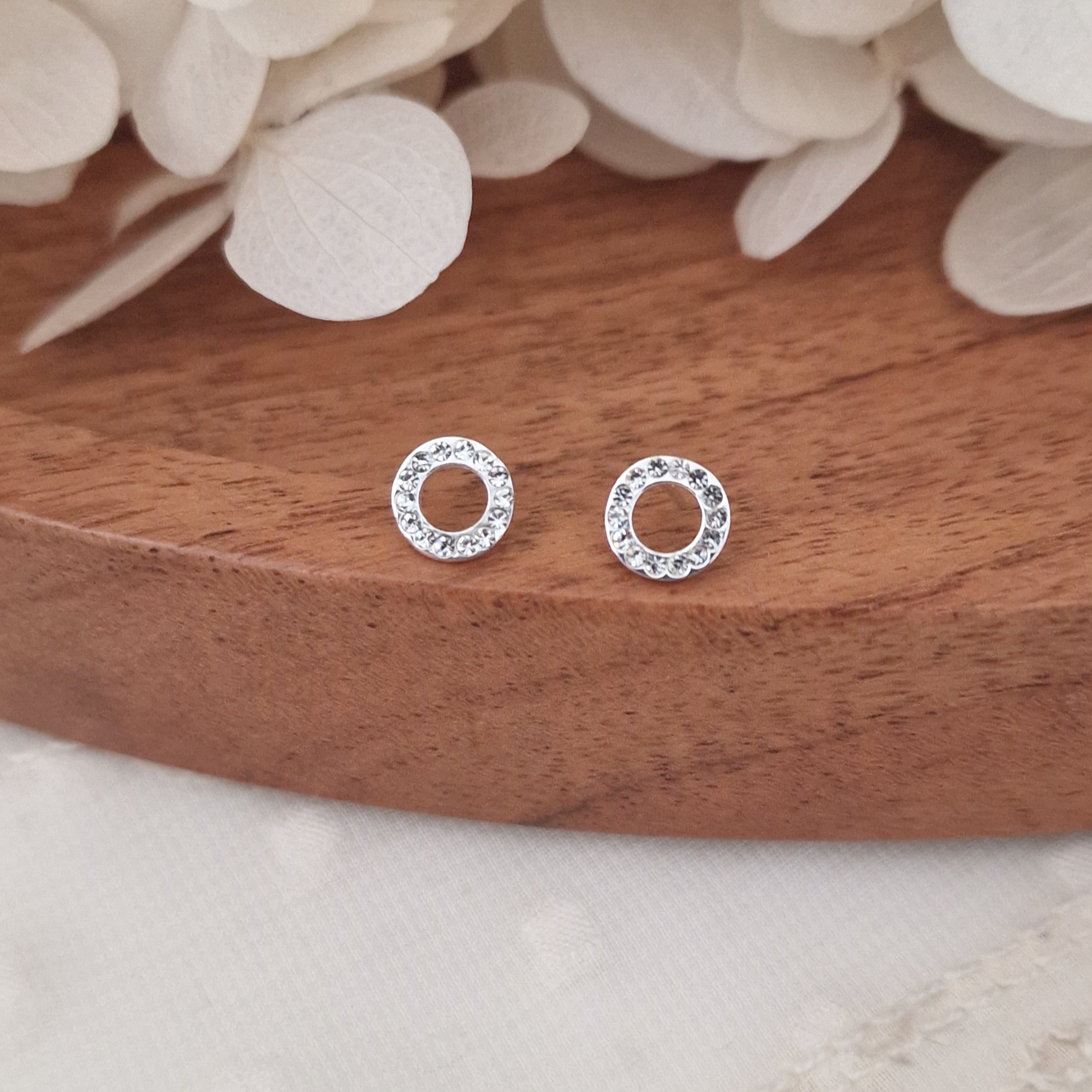 925 Sterling Silver Circle Stud Earrings – Dainty Solid Silver Round Earrings with Sparkling Crystals – Minimalist Circle Jewelry