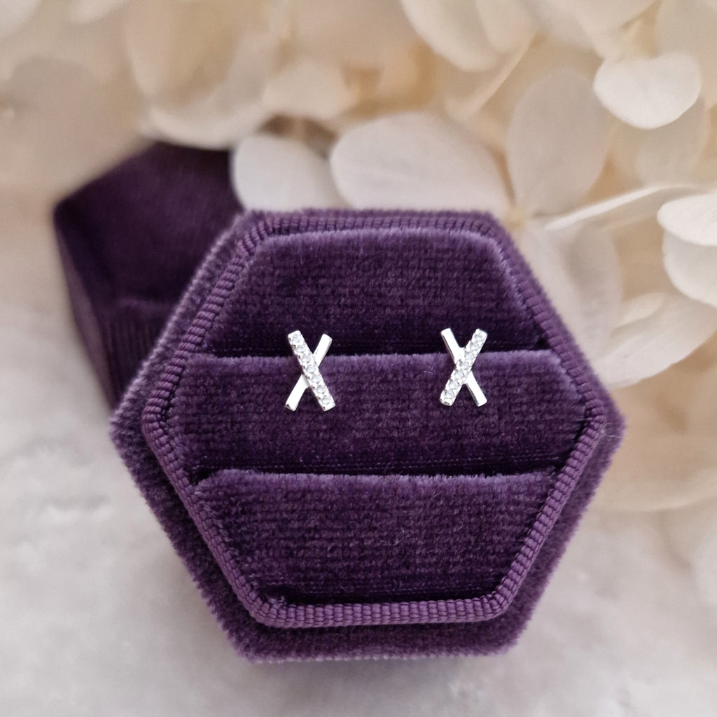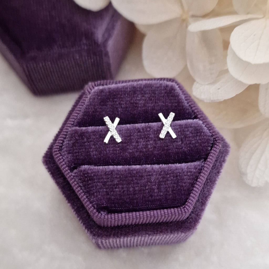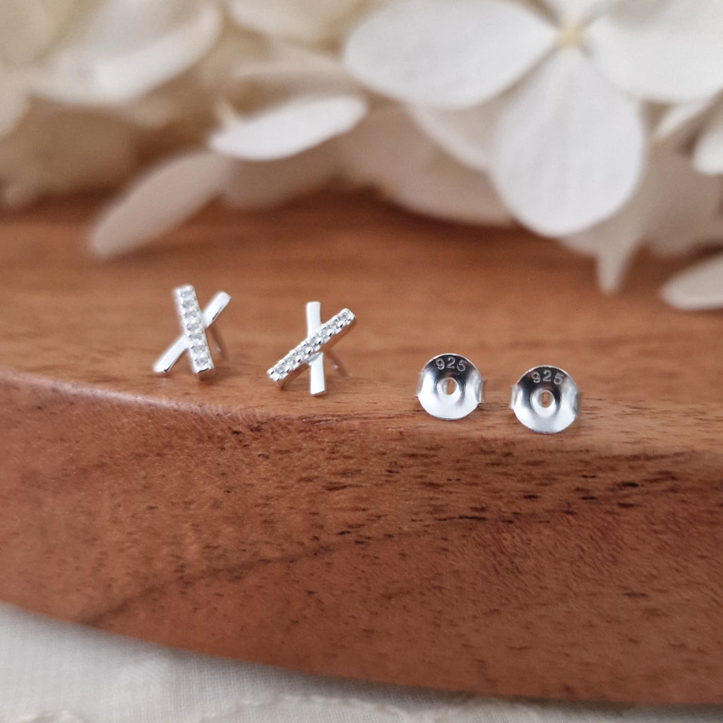 These minimalist cross stud earrings are crafted in solid 925 sterling silver and adorned with sparkling white cubic zirconia. Their sleek, geometric shape adds a subtle yet modern touch to your everyday look. Lightweight and hypoallergenic, they’re perfect for layering or wearing alone.