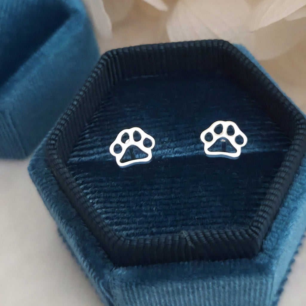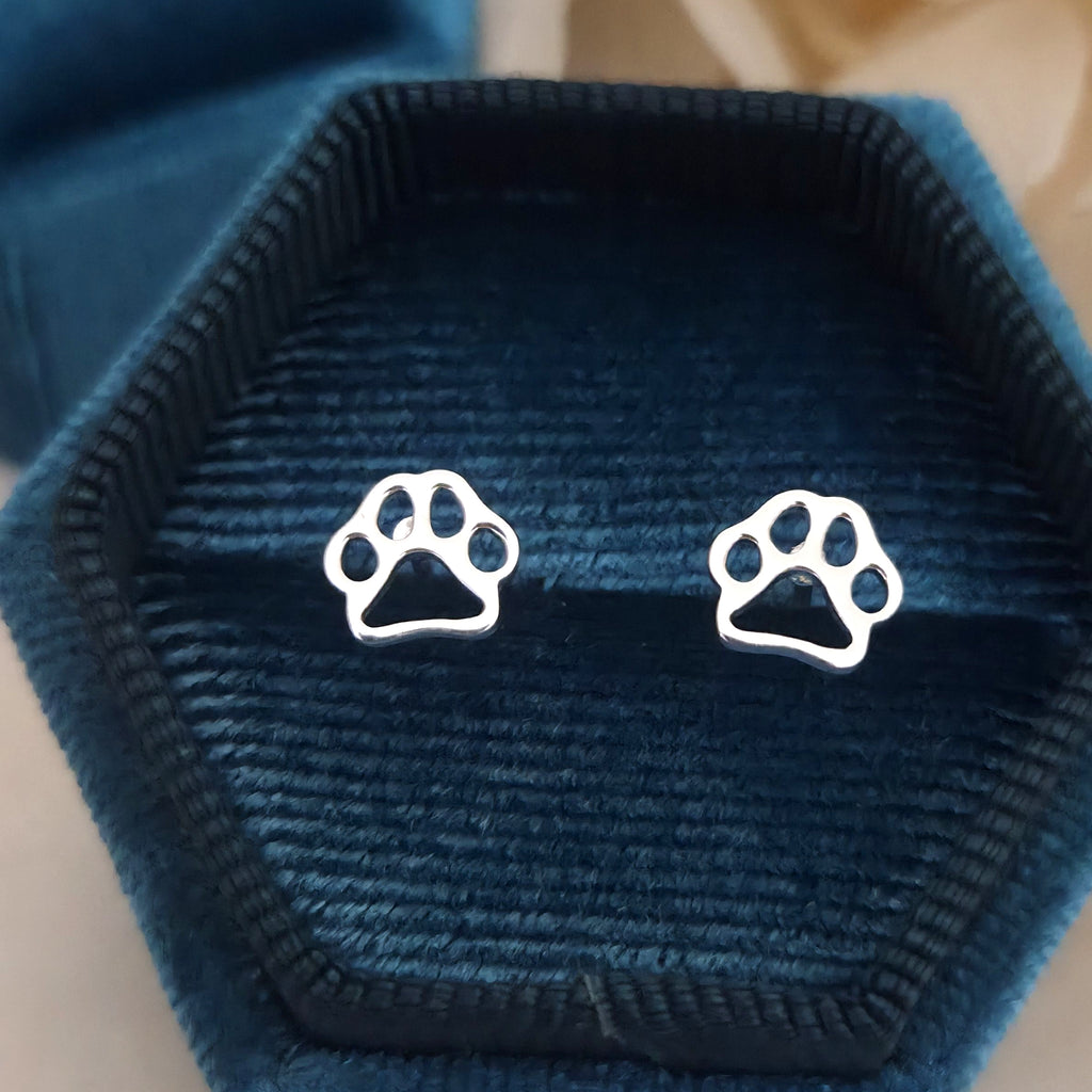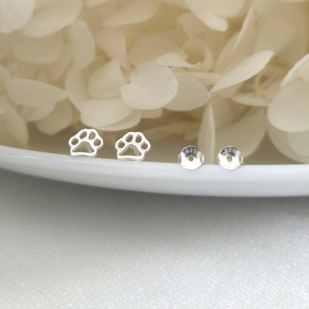 Celebrate your love for dogs with these simple and elegant paw print stud earrings, crafted in 925 sterling silver. A charming gift for any animal lover or pet parent.