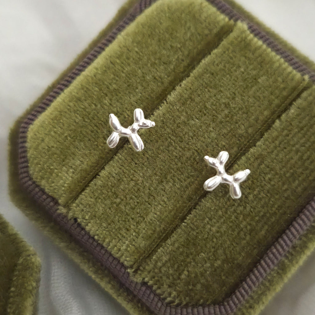 Playful and modern, these tiny balloon dog stud earrings in 925 sterling silver are a fun twist on minimalist jewelry. A lighthearted and stylish gift idea for animal lovers or art fans.