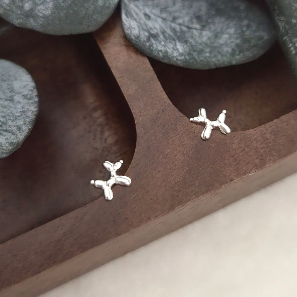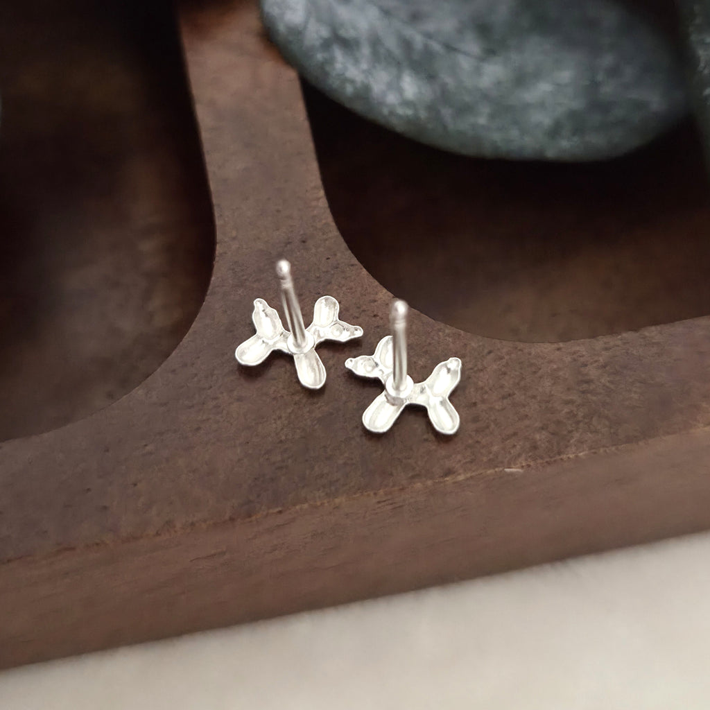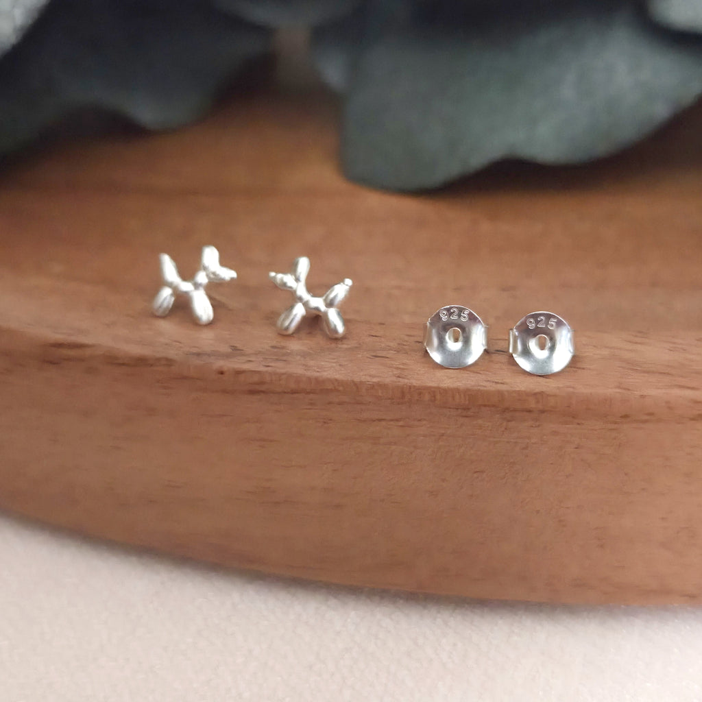 925 Sterling Silver Dog Stud Earrings – Tiny Balloon Dog Studs in Solid Silver – Cute Minimalist Earrings