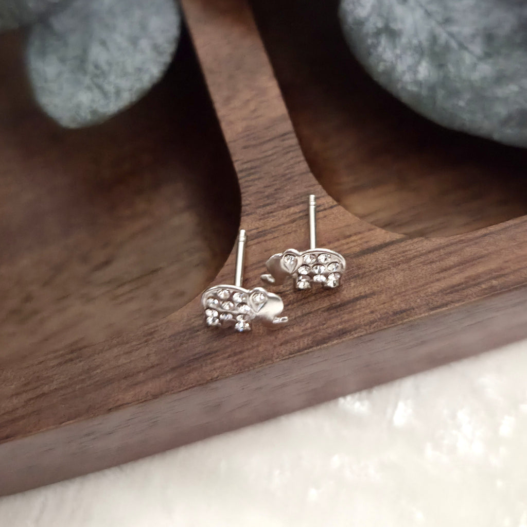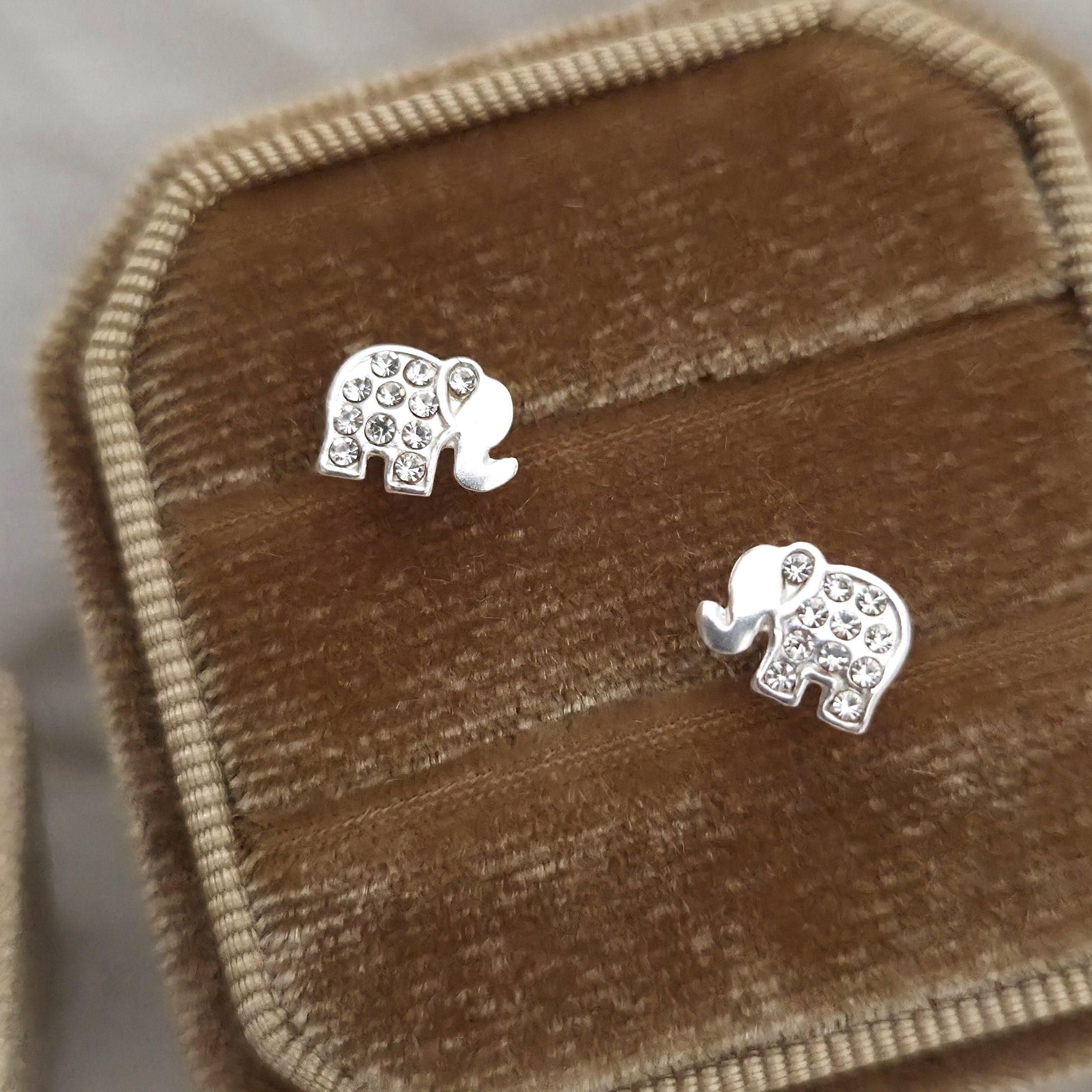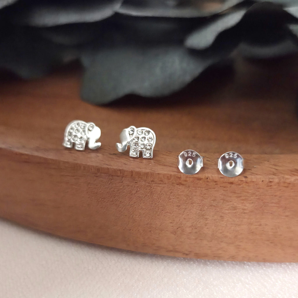 These adorable 925 sterling silver elephant stud earrings are decorated with sparkling white crystals, perfect for animal lovers or as a thoughtful gift. Their minimalist yet playful design adds a charming touch to any outfit.