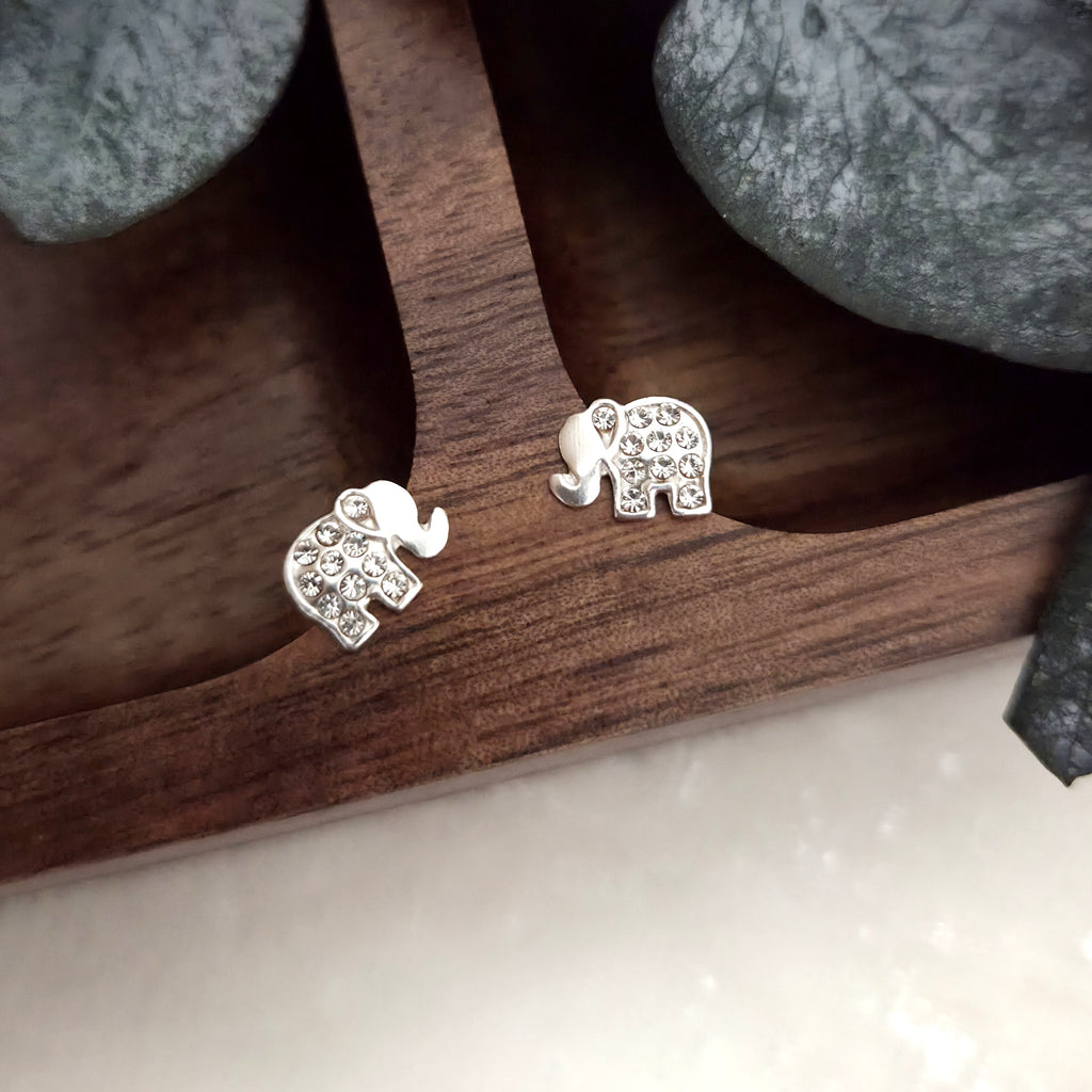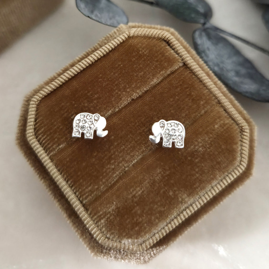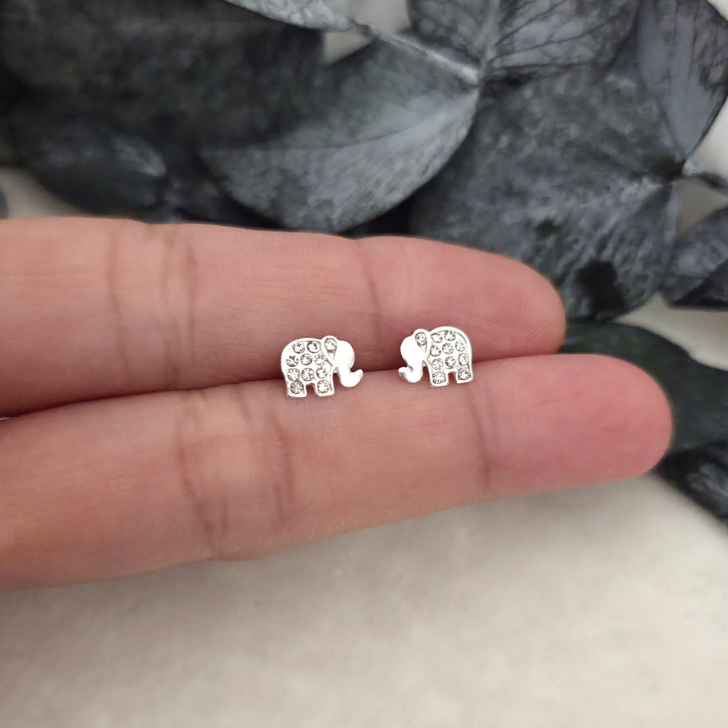 These adorable 925 sterling silver elephant stud earrings are decorated with sparkling white crystals, perfect for animal lovers or as a thoughtful gift. Their minimalist yet playful design adds a charming touch to any outfit.