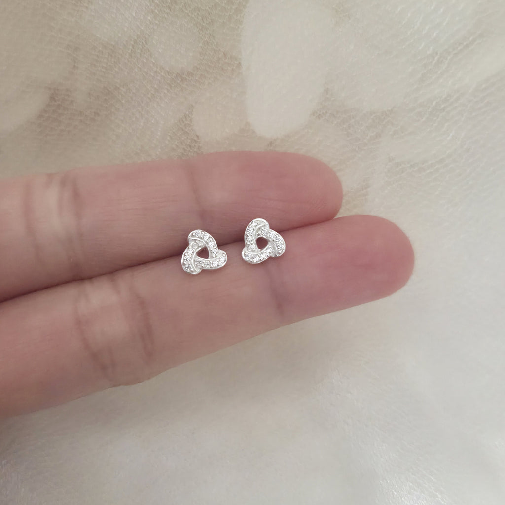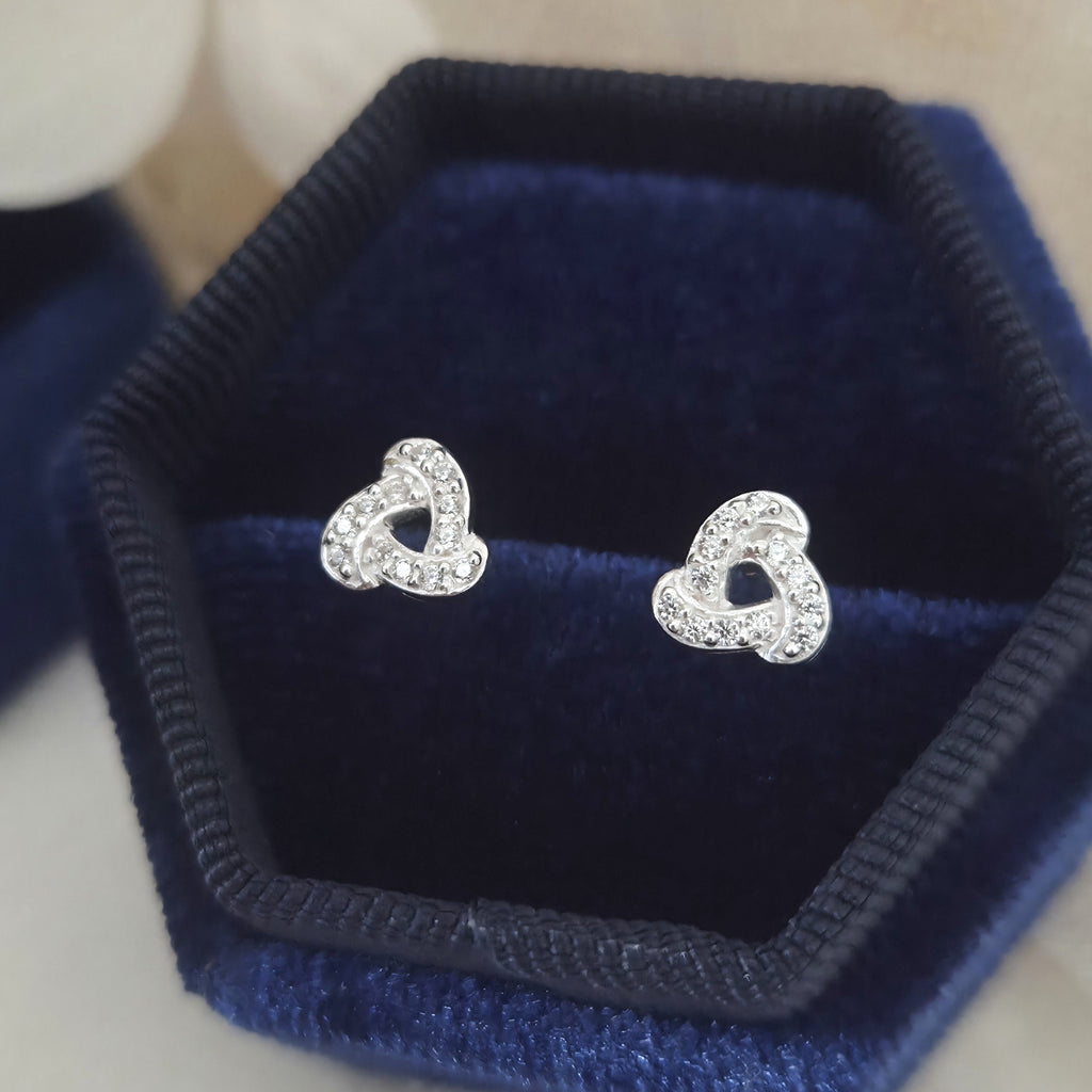 925 Sterling Silver Geometric Stud Earrings – Luxury Geometric Studs in Solid Silver with White CZ Cubic Zirconia