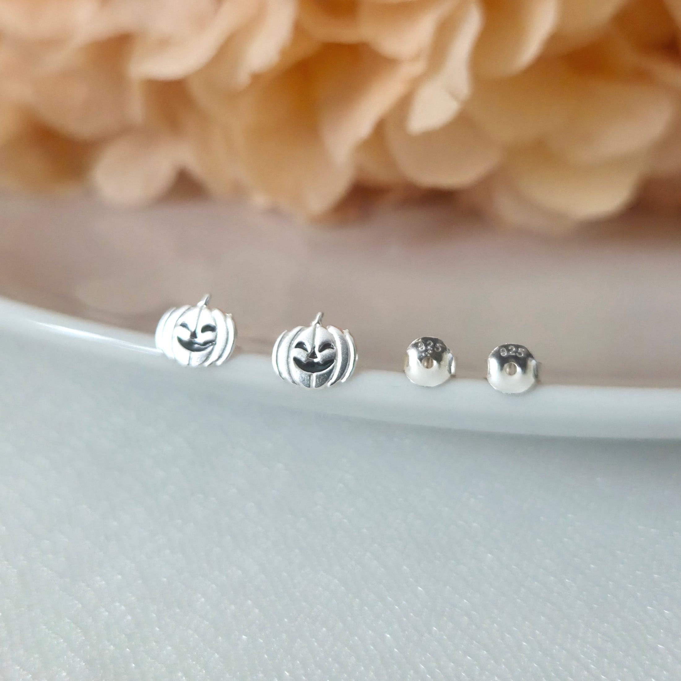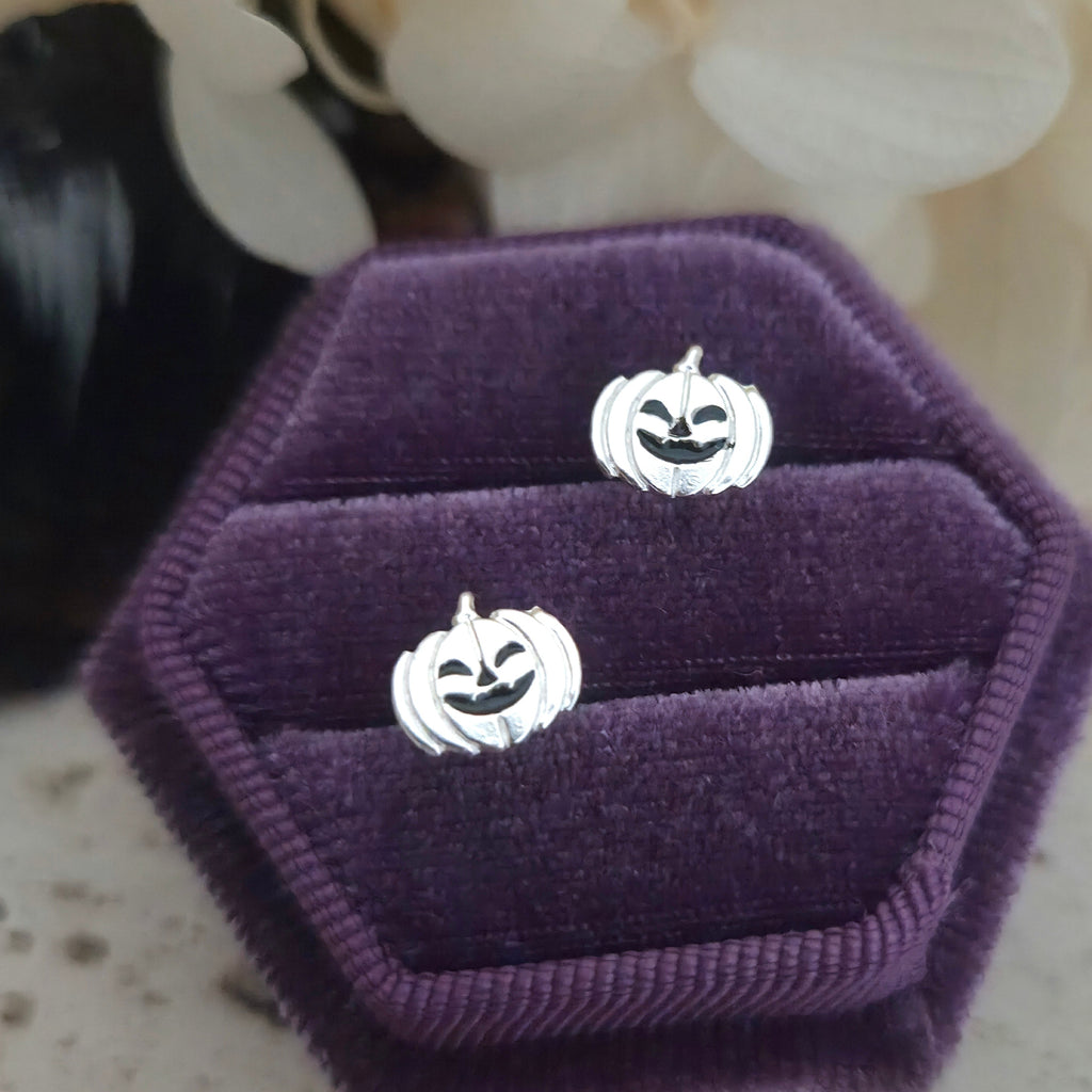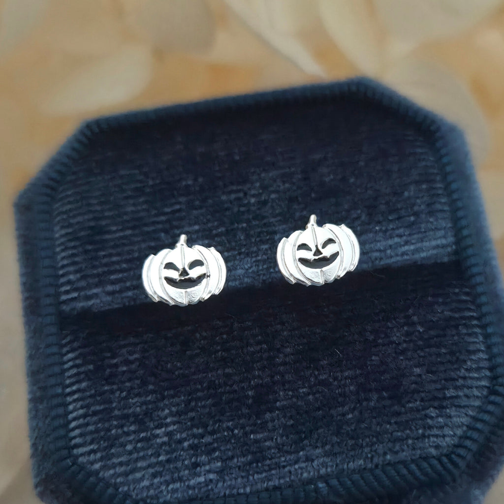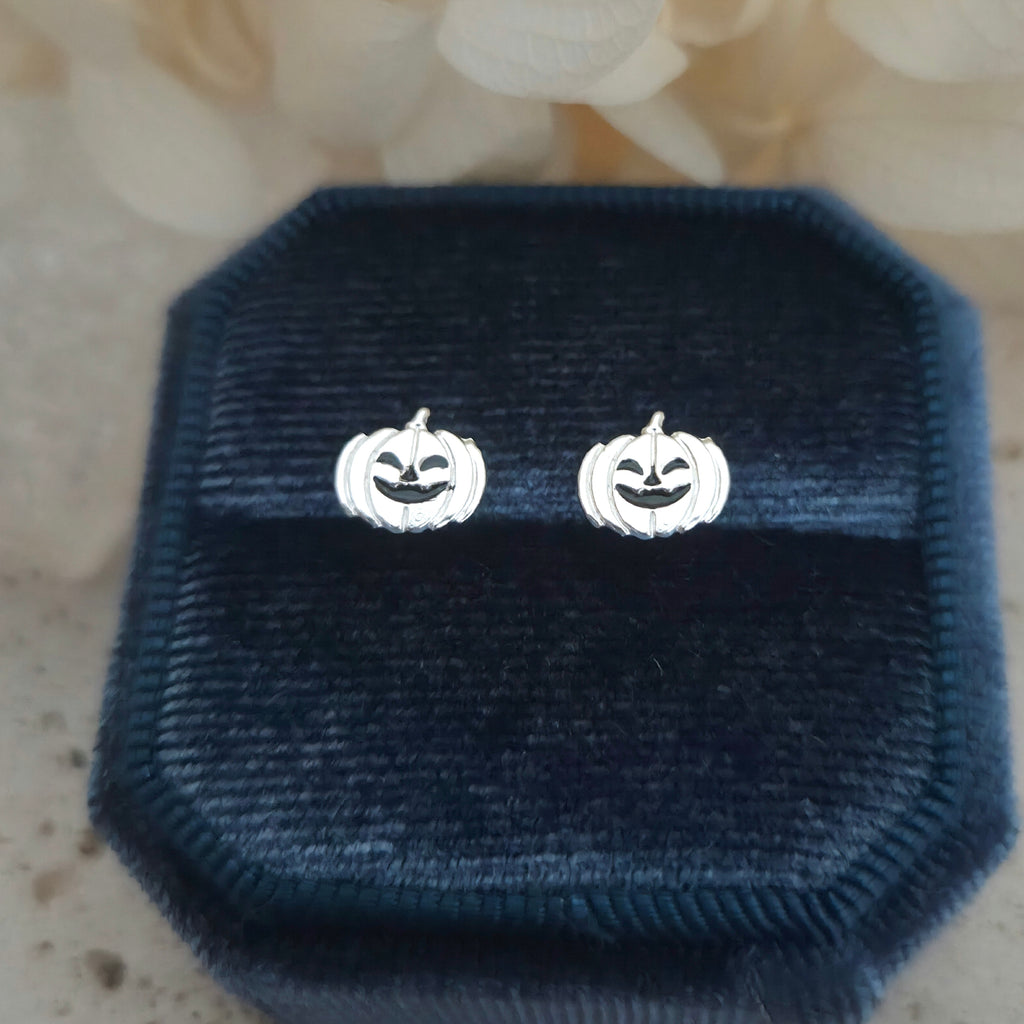 925 Sterling Silver Ghost Pumpkin Stud Earrings – Solid Silver Halloween Studs
