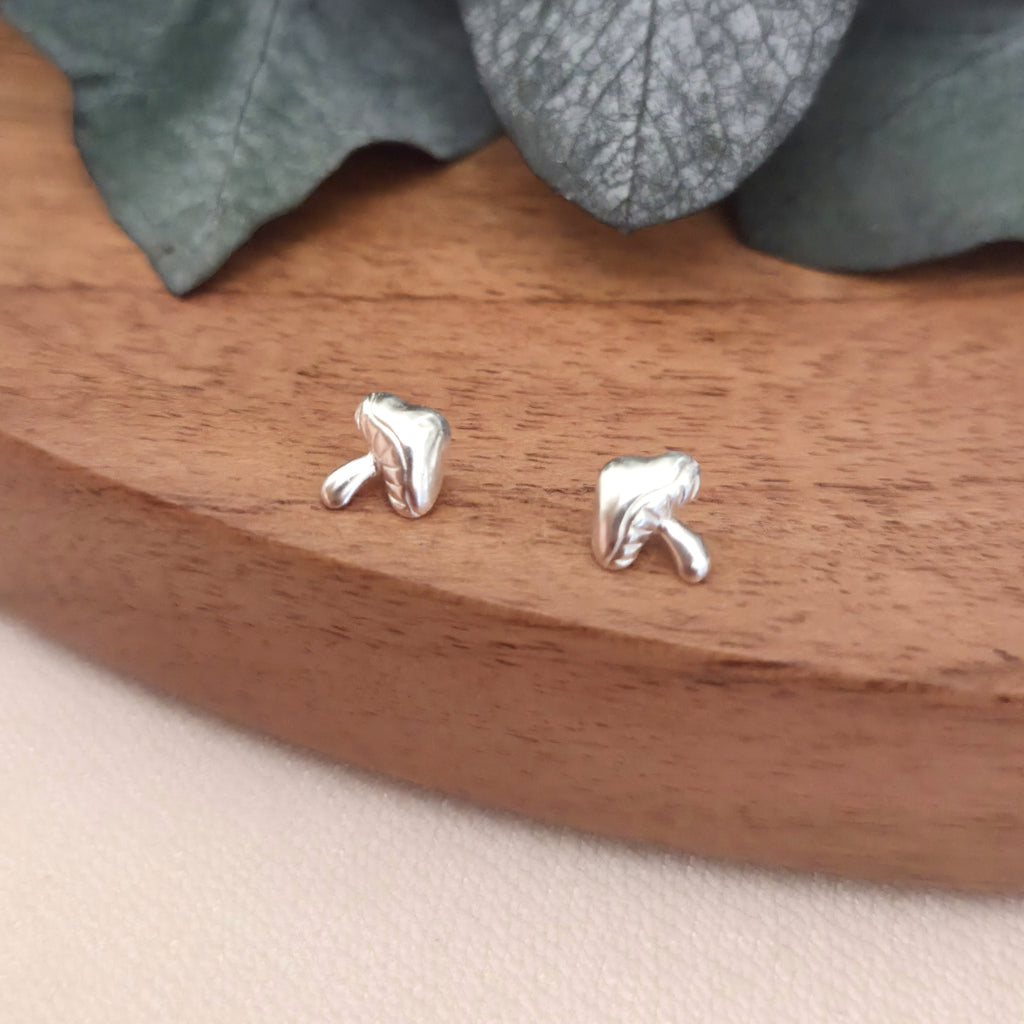 925 Sterling Silver Mushroom Stud Earrings – Cute Minimalist Mushroom Studs in Solid Silver – Jewelry Gift for Nature Lovers