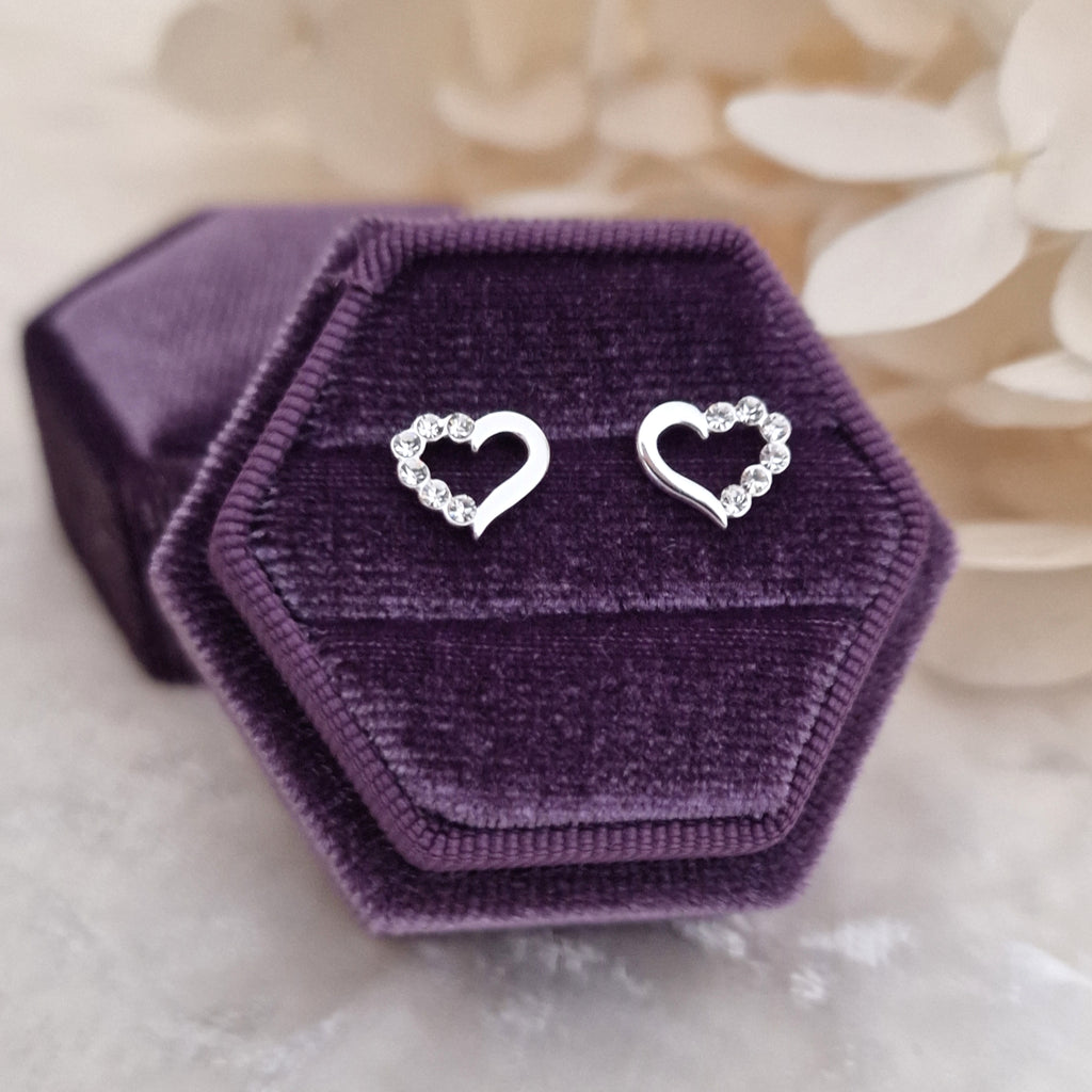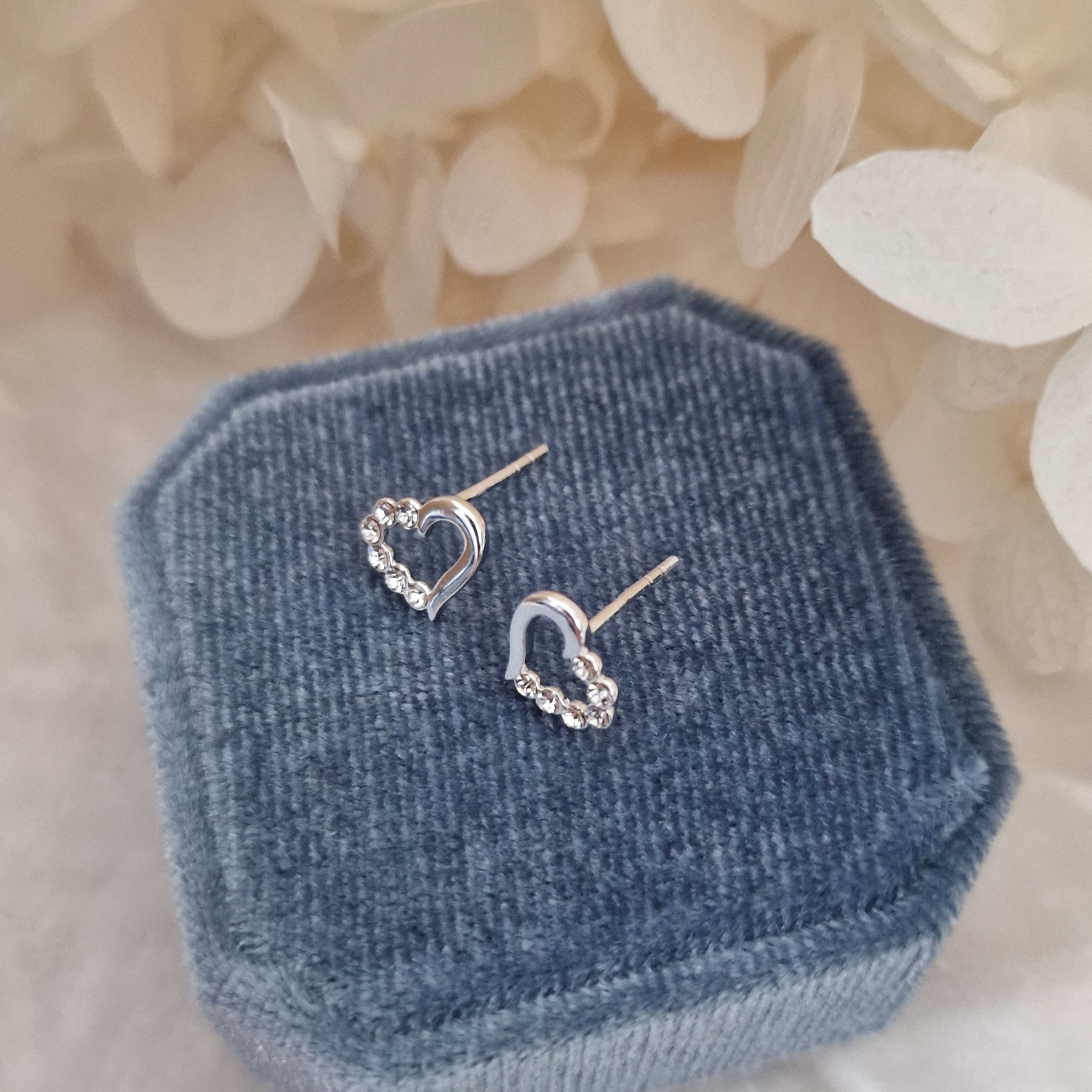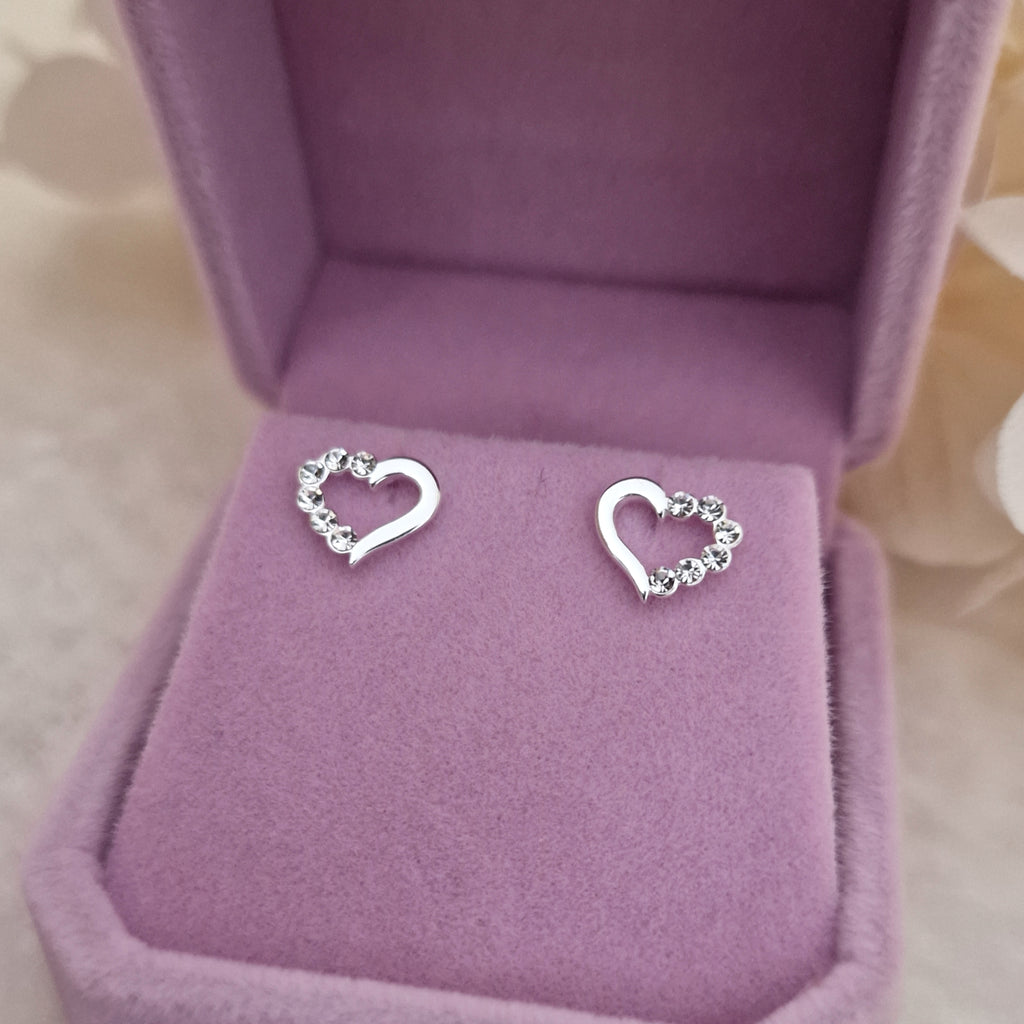 These open heart stud earrings are crafted in solid 925 sterling silver and accented with sparkling white crystals. Their minimalist yet romantic shape makes them perfect for everyday wear or a thoughtful gift. Lightweight, hypoallergenic, and full of charm, these earrings are a timeless addition to any jewelry collection.