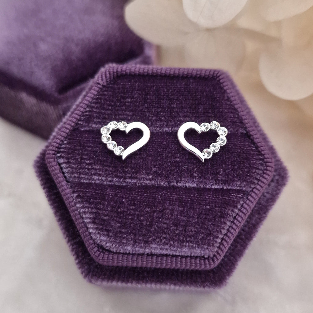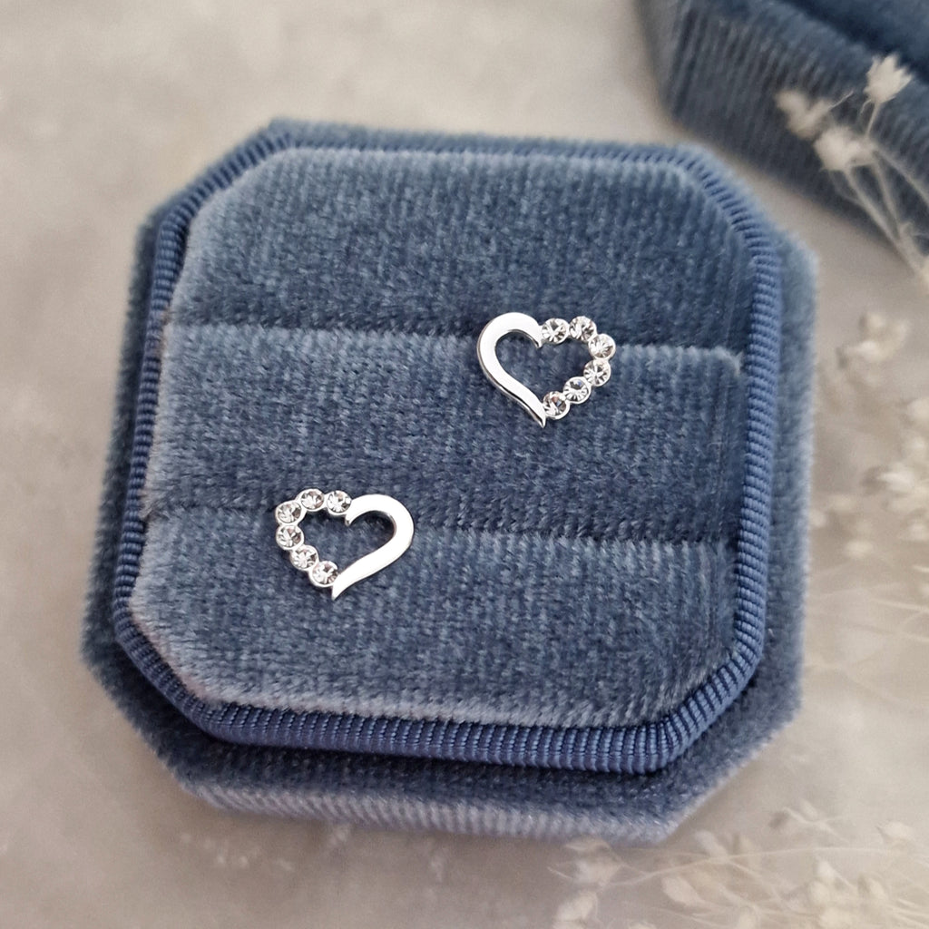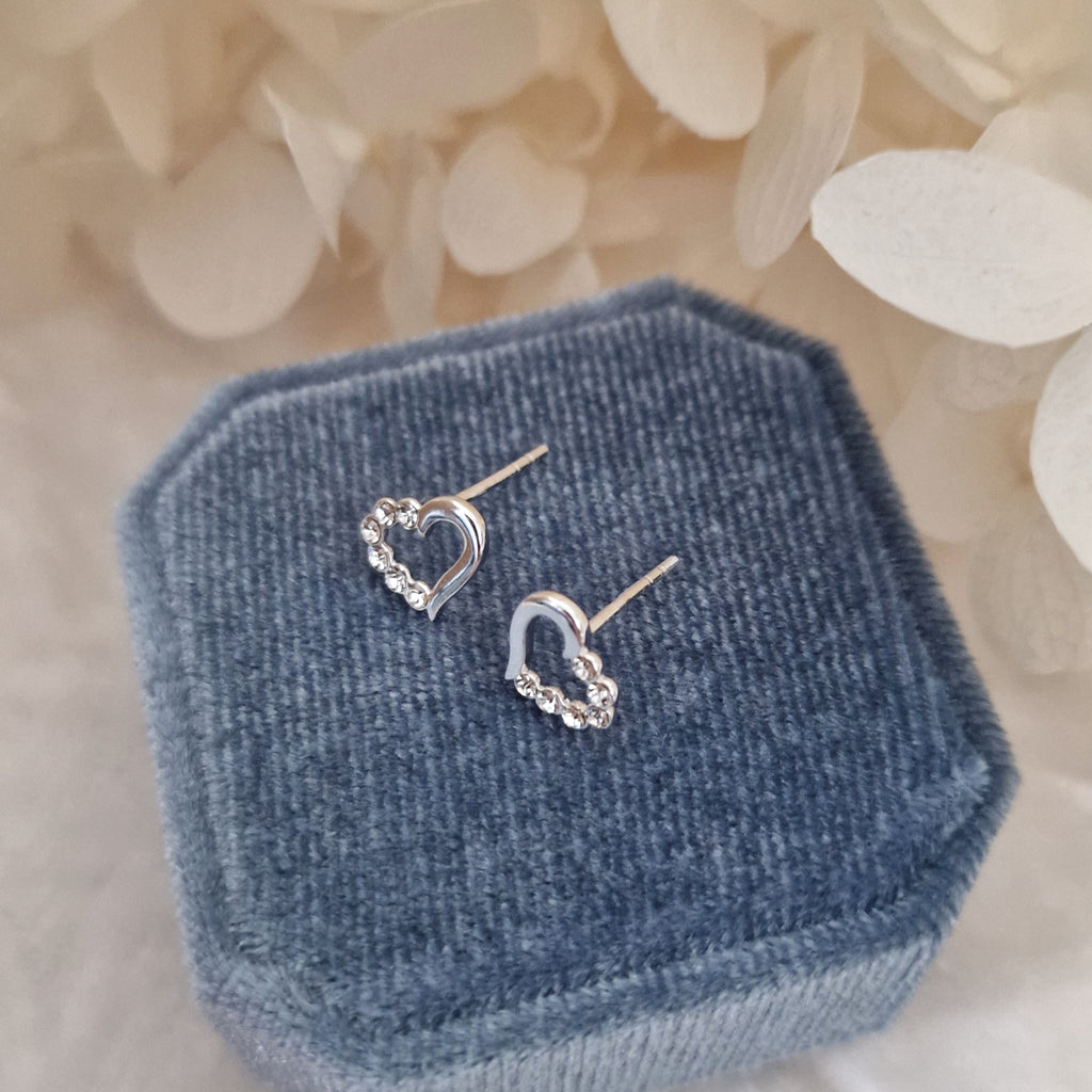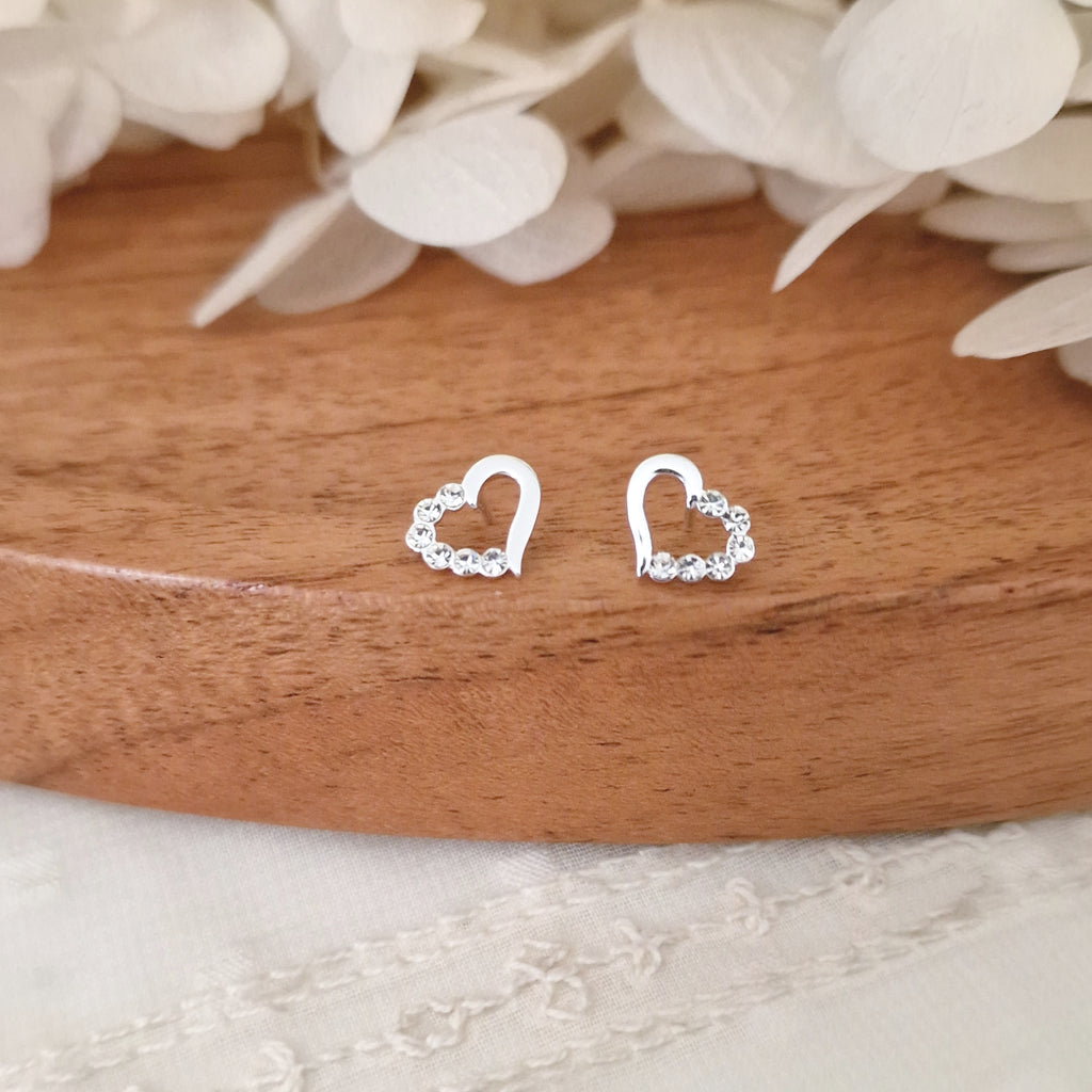 These open heart stud earrings are crafted in solid 925 sterling silver and accented with sparkling white crystals. Their minimalist yet romantic shape makes them perfect for everyday wear or a thoughtful gift. Lightweight, hypoallergenic, and full of charm, these earrings are a timeless addition to any jewelry collection.