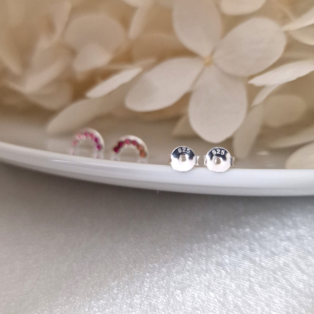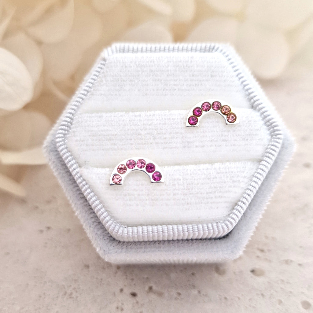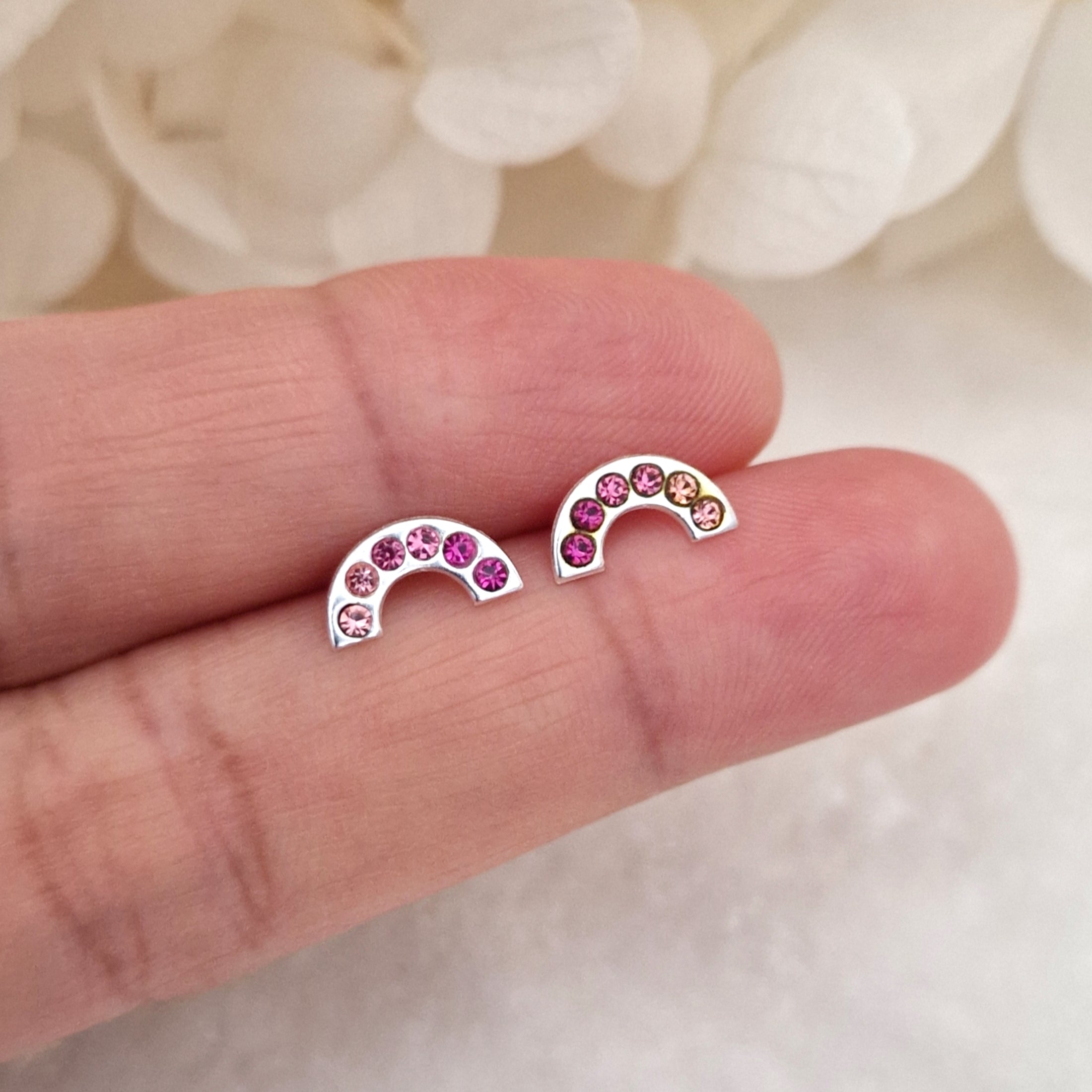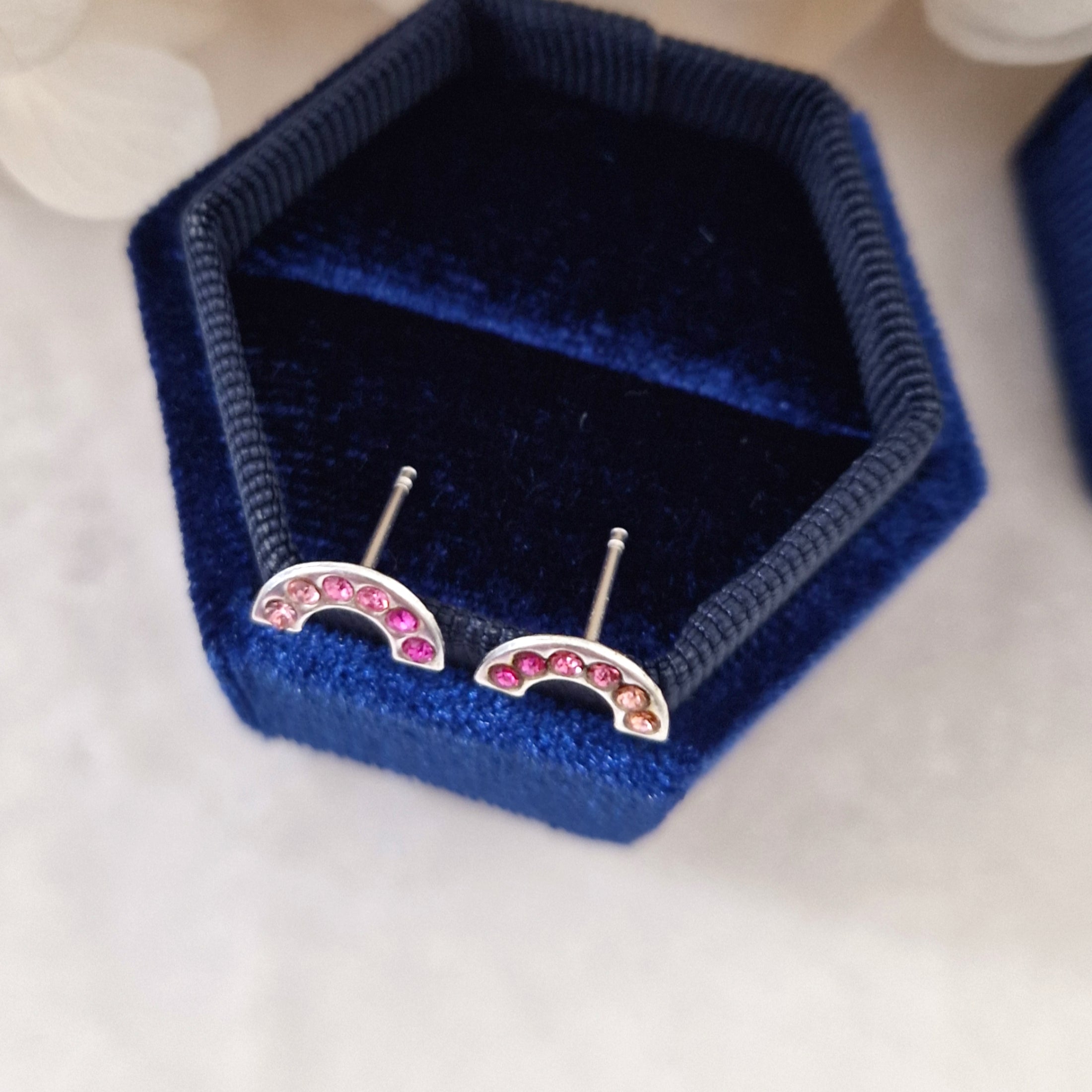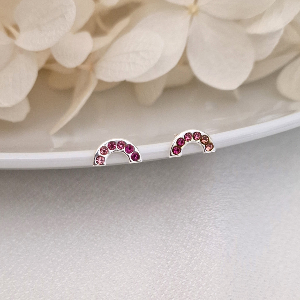 925 Sterling Silver Pink Rainbow Stud Earrings – Rainbow Studs with Pink Crystals – Playful and Feminine Jewelry