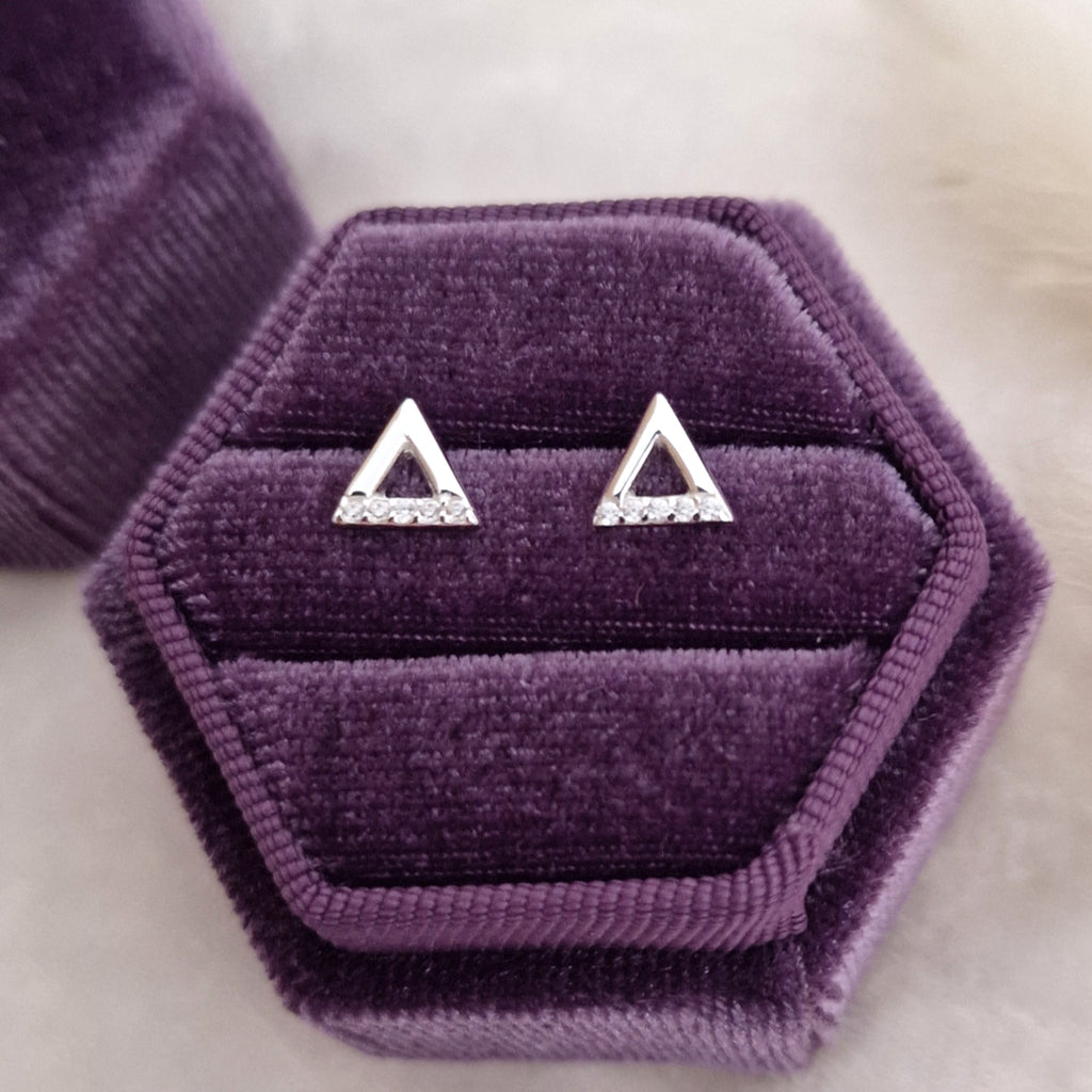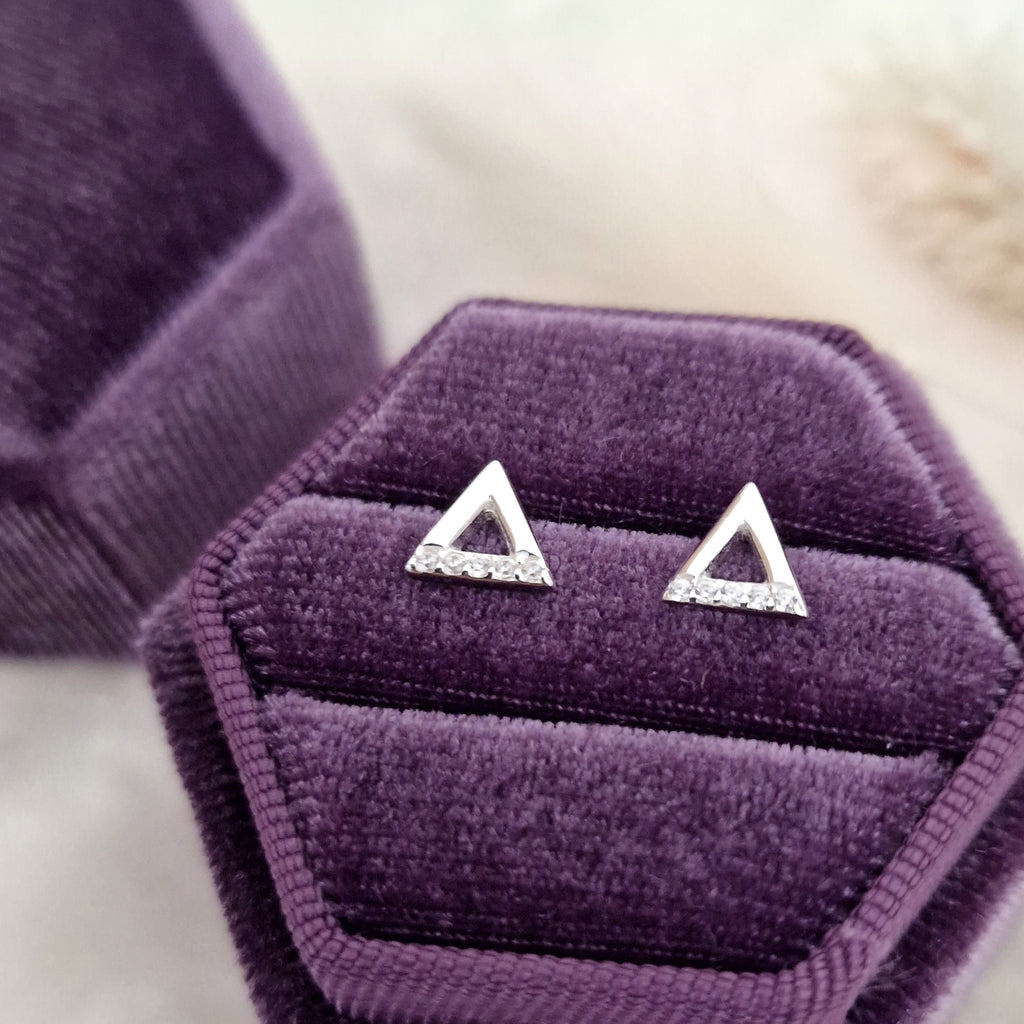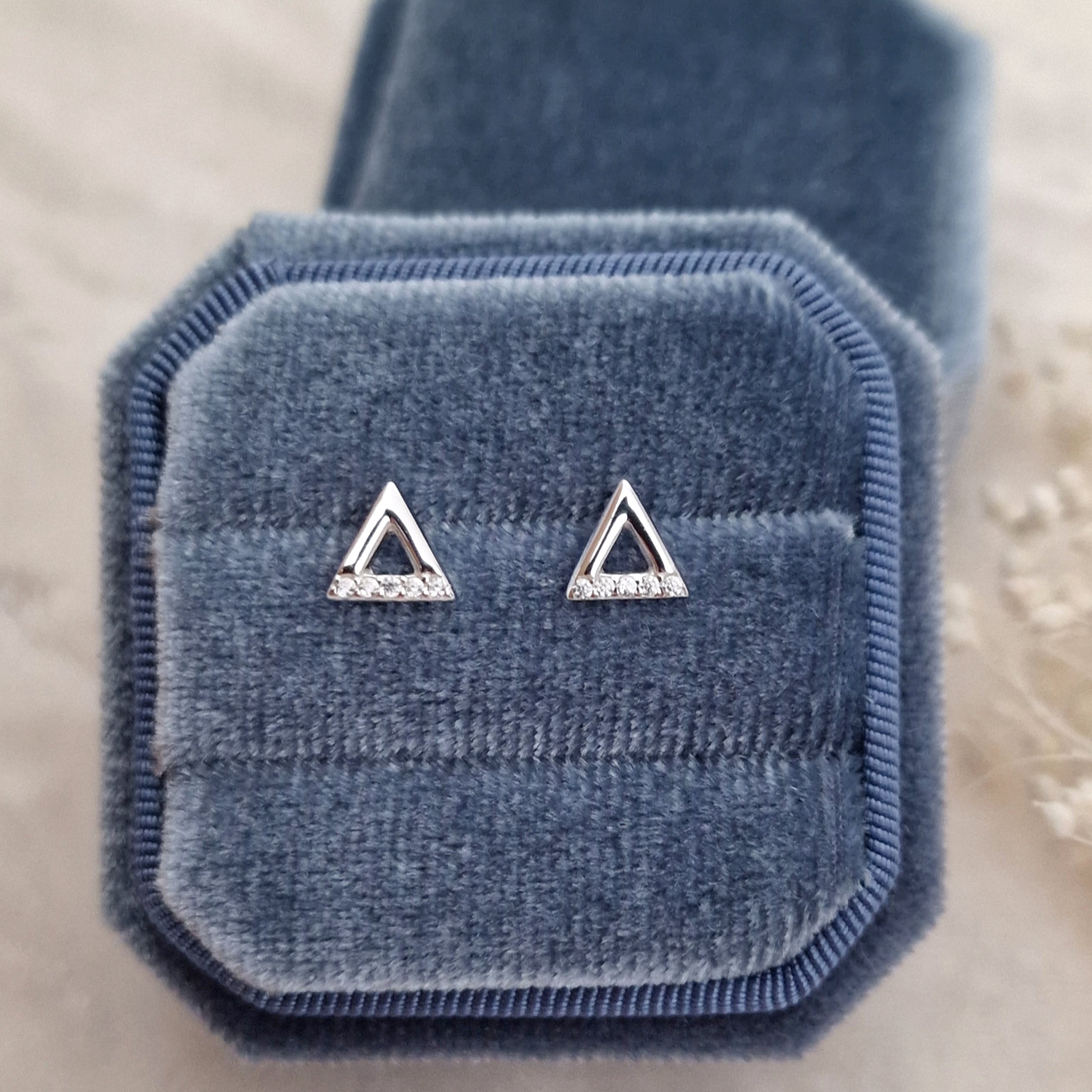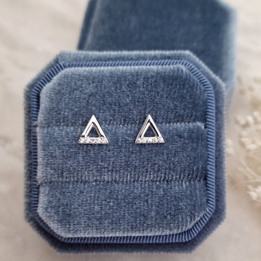 925 Sterling Silver Triangle Stud Earrings – Luxury Triangle Studs in Solid Silver with White CZ Cubic Zirconia