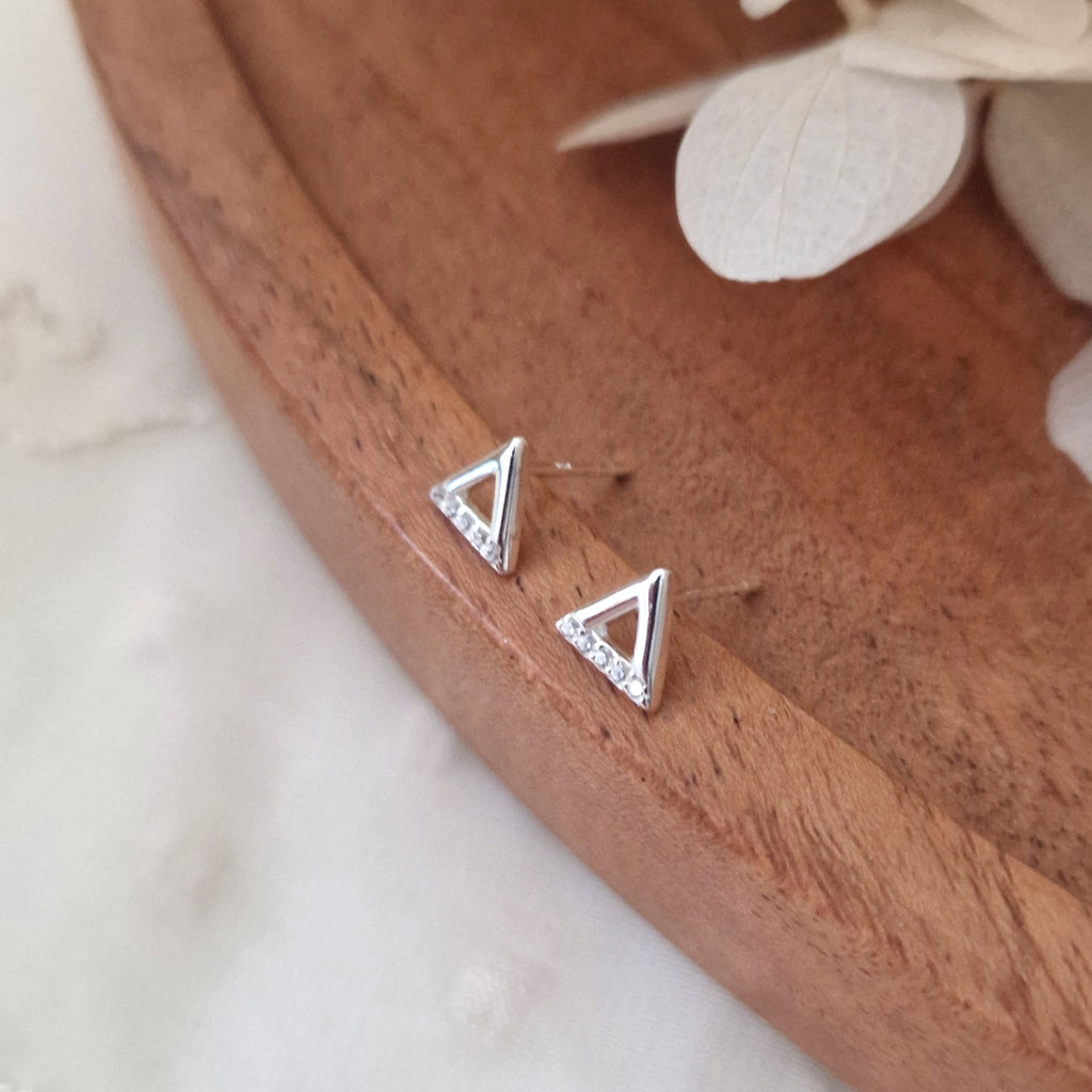 Sleek and modern, these triangle stud earrings are crafted from genuine 925 sterling silver and accented with white cubic zirconia for a refined sparkle. Their geometric shape adds a minimalist, contemporary touch to any outfit—perfect for everyday wear or to elevate a simple look with subtle shine.