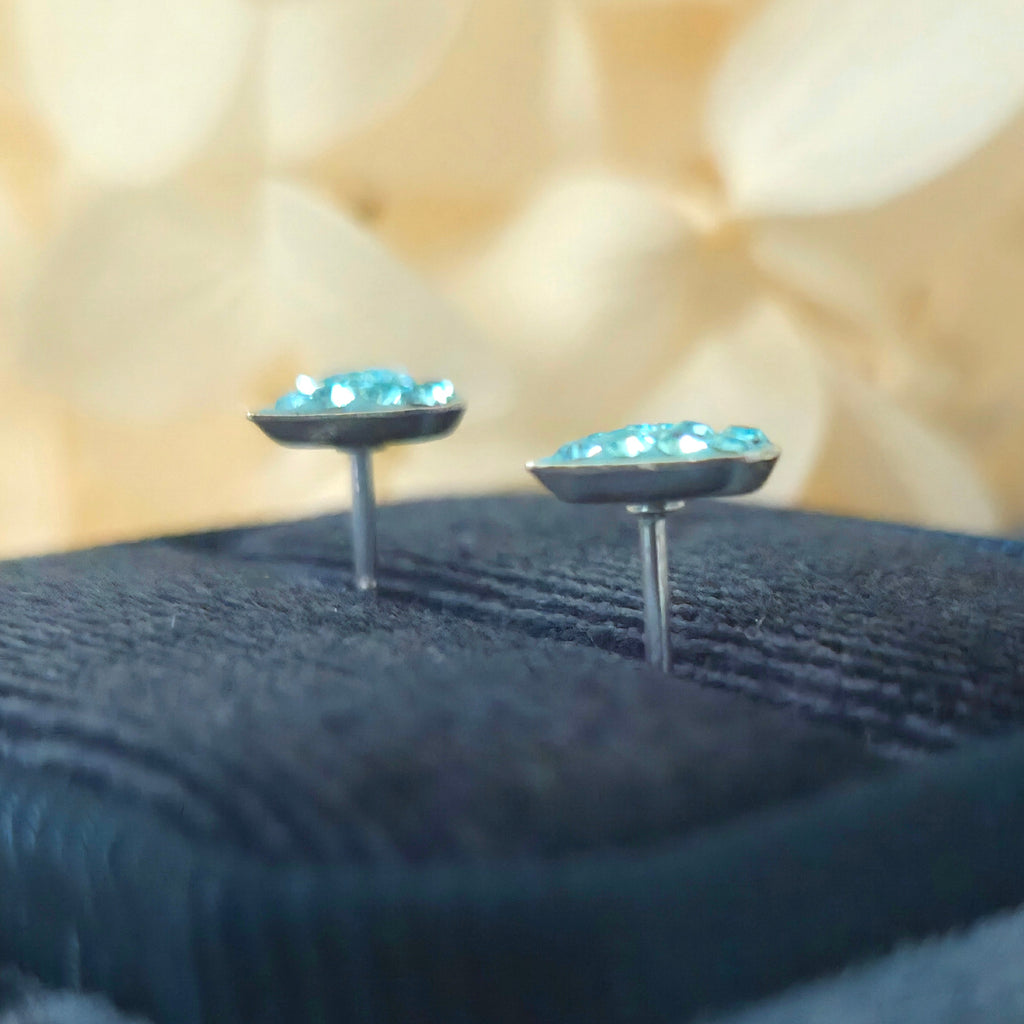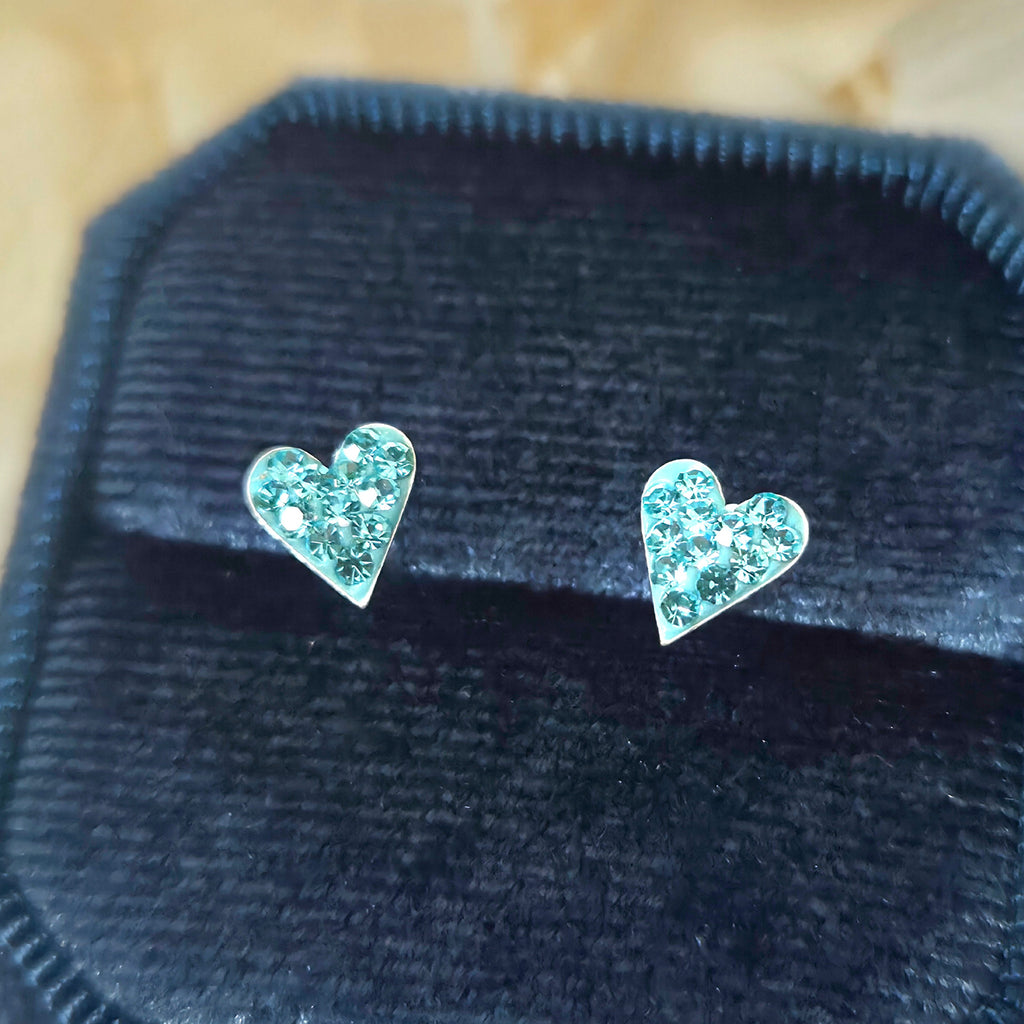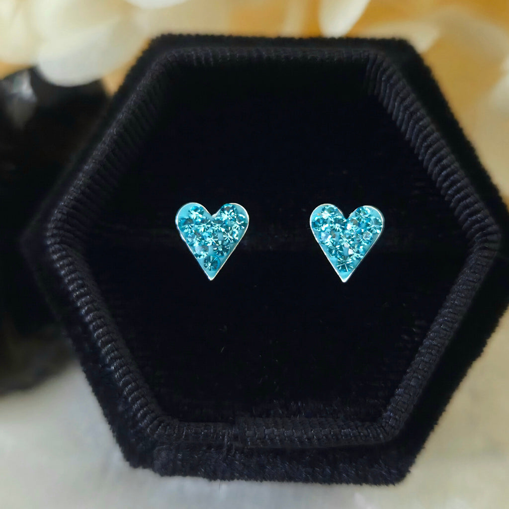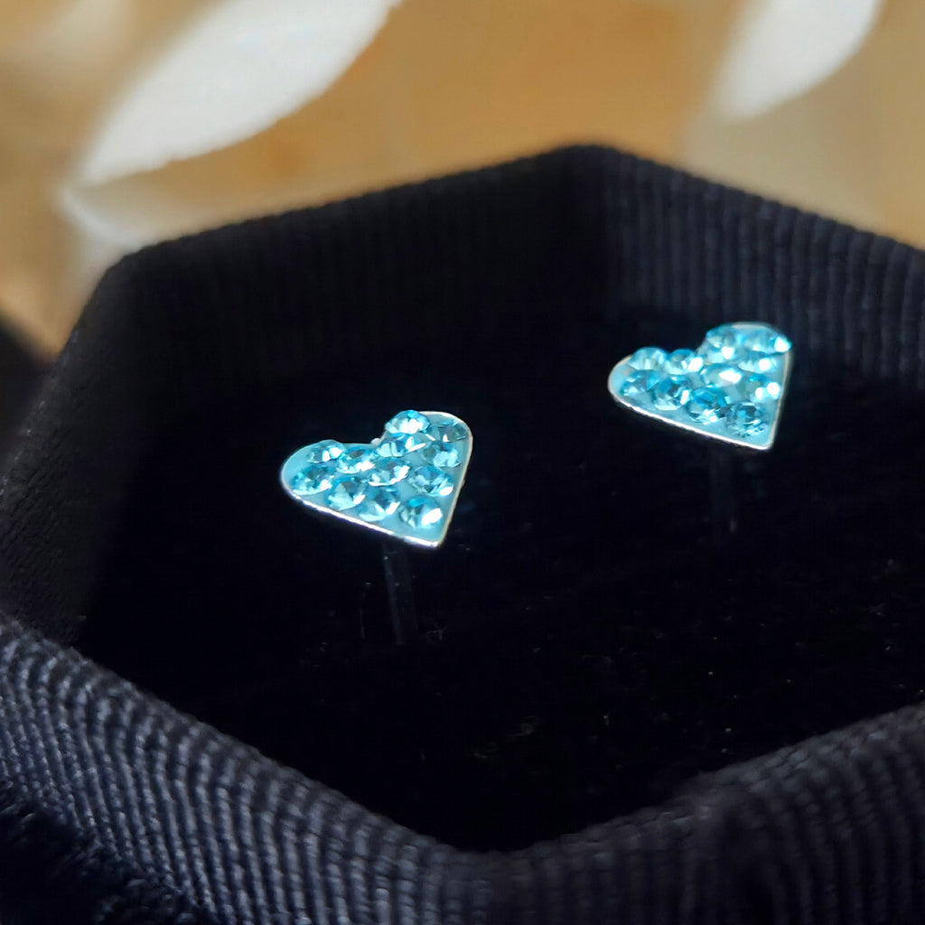 Delicate and sparkling, these heart-shaped stud earrings are crafted in solid 925 sterling silver and adorned with dazzling Aqua-Bohemica blue crystals. A perfect mix of charm and elegance, ideal for everyday wear or as a thoughtful gift.