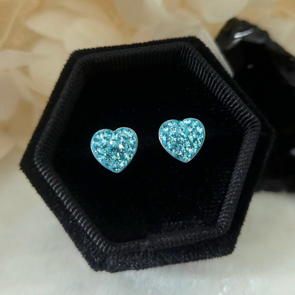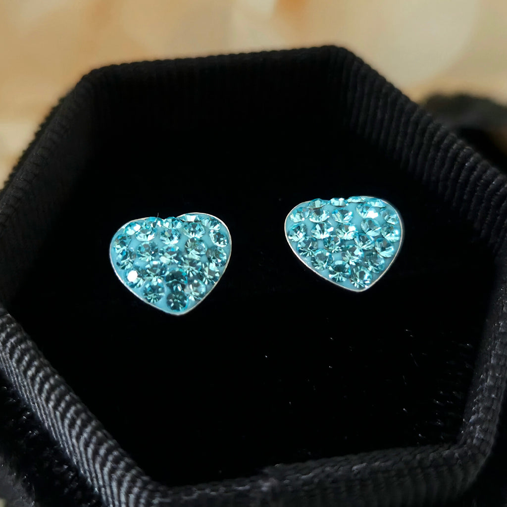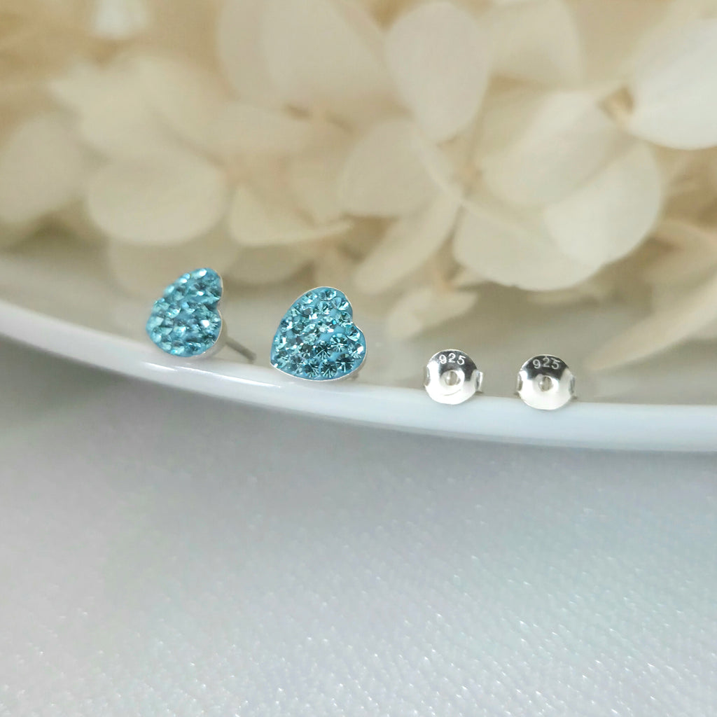Luxury Blue Heart Stud Earrings in 925 Sterling Silver – Heart Studs with Aqua Bohemica Blue Crystals
