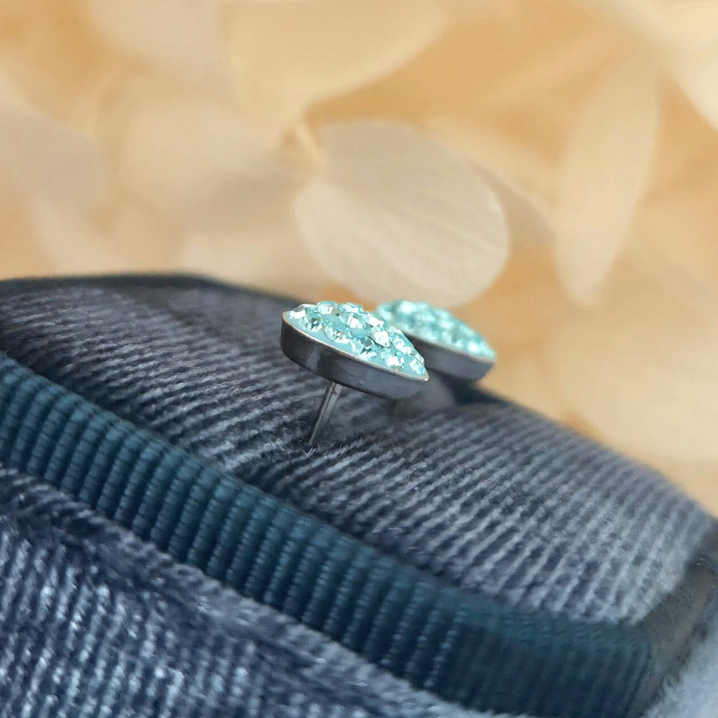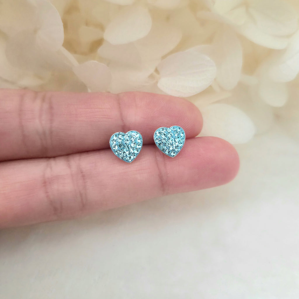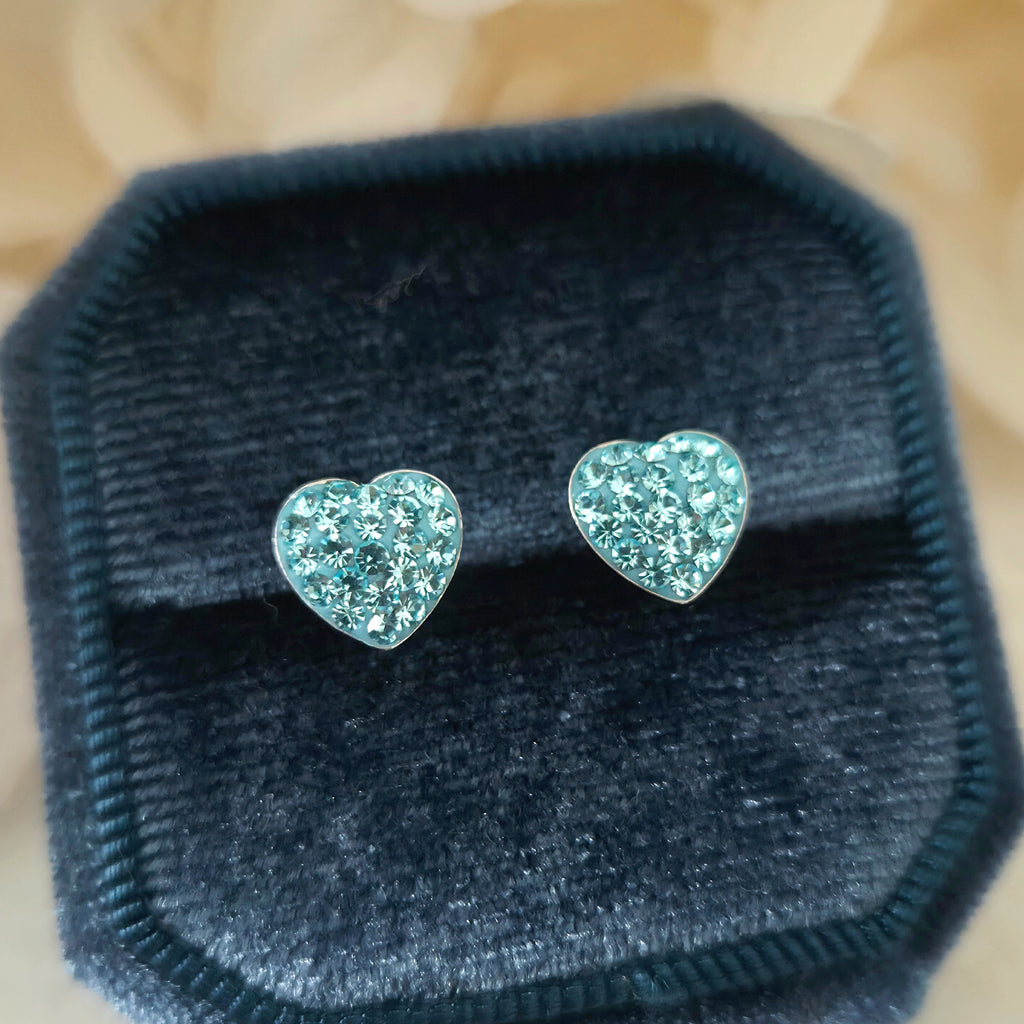 Luxury Blue Heart Stud Earrings in 925 Sterling Silver – Heart Studs with Aqua Bohemica Blue Crystals
