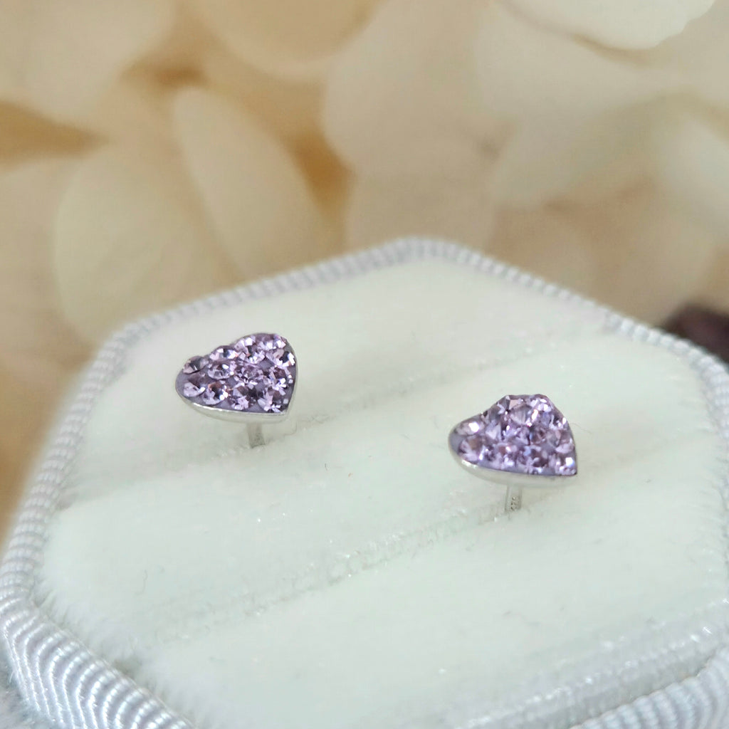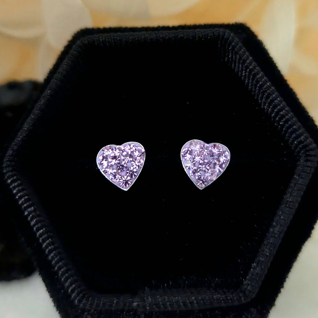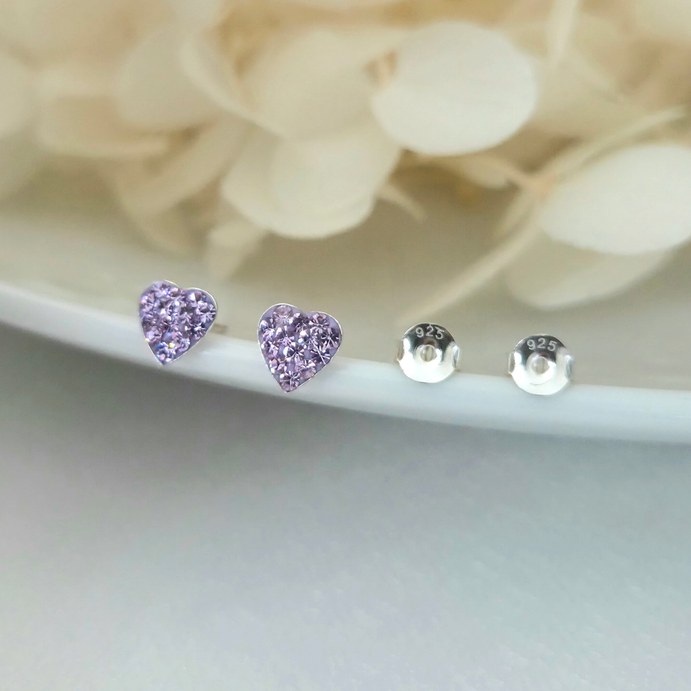 Mini Purple Heart Stud Earrings in 925 Sterling Silver – Heart Studs with Violet Crystals