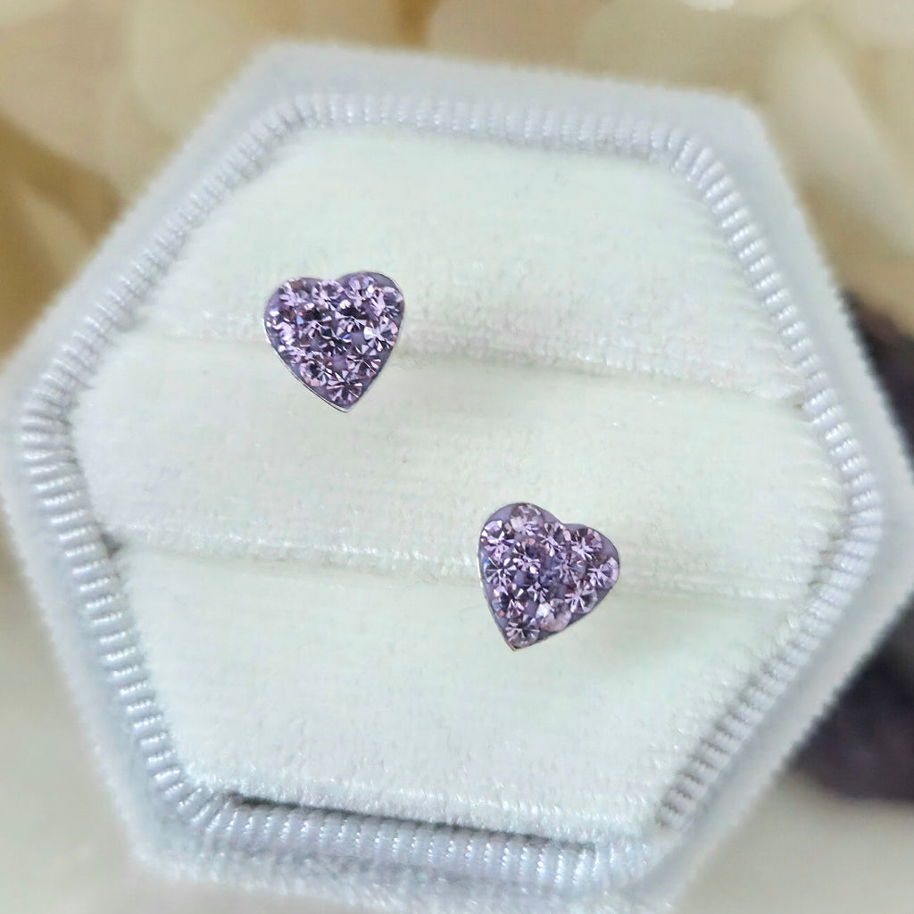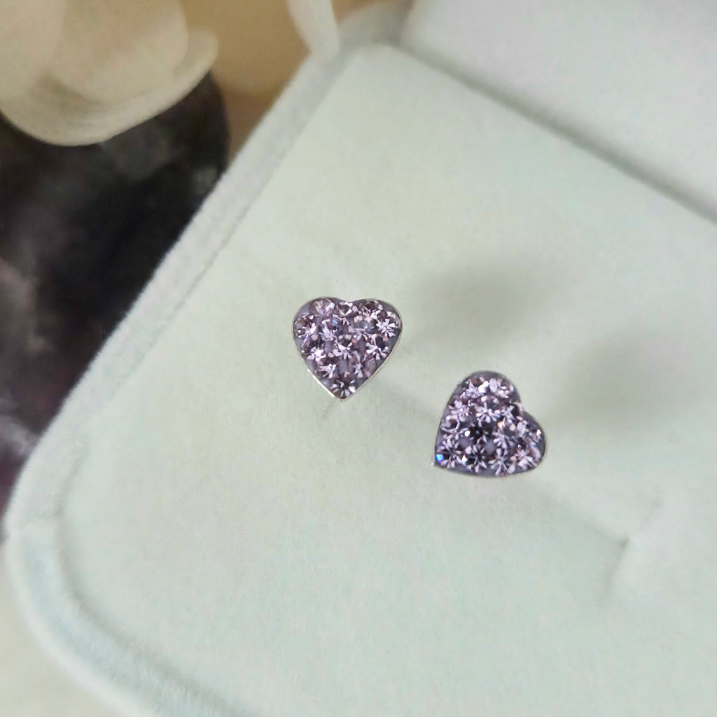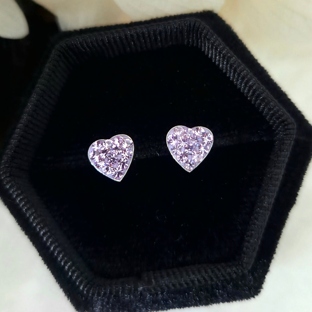 Mini Purple Heart Stud Earrings in 925 Sterling Silver – Heart Studs with Violet Crystals