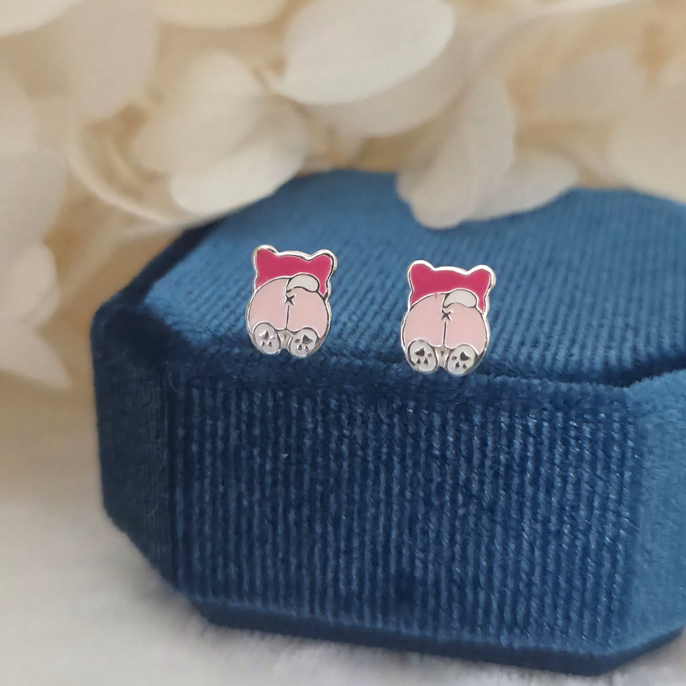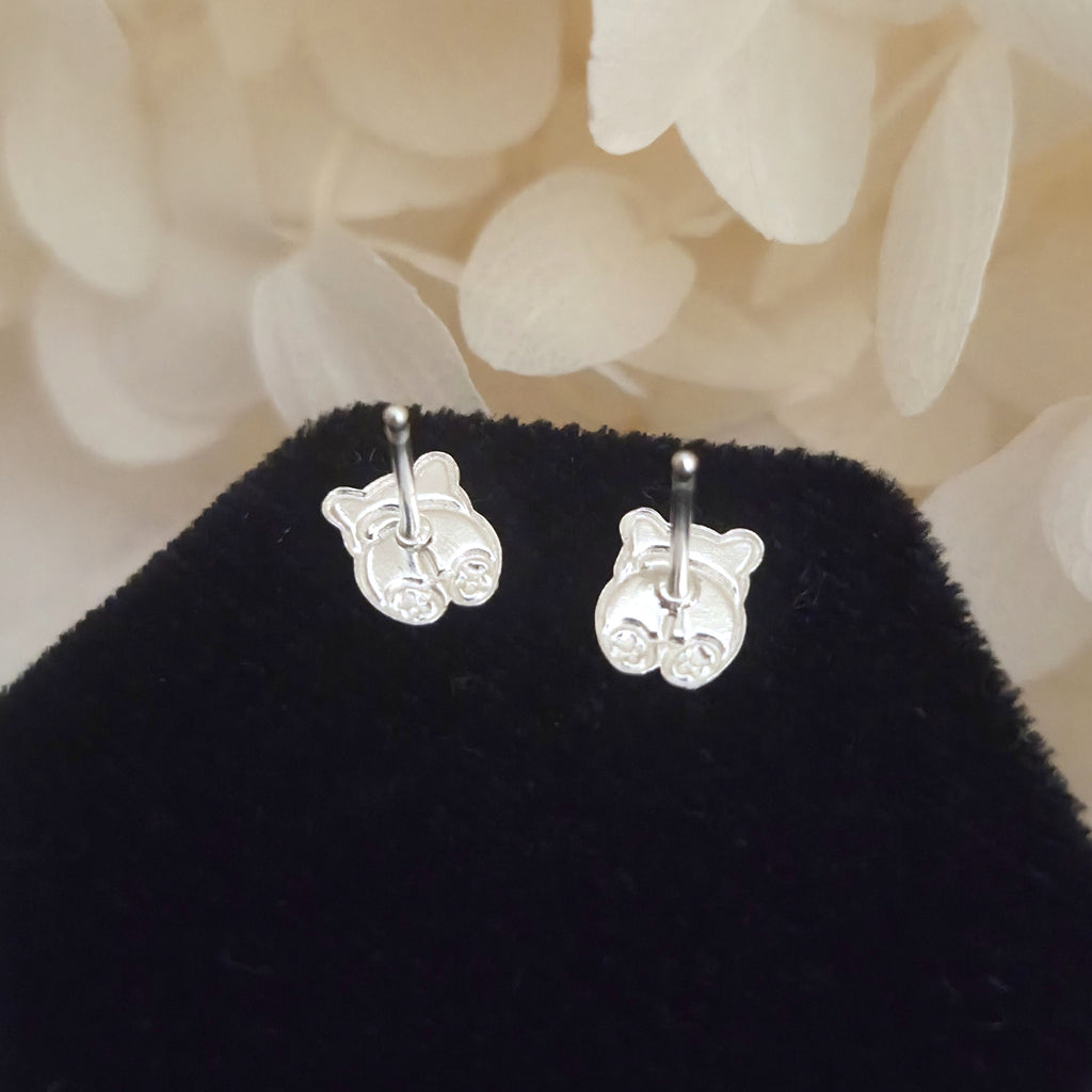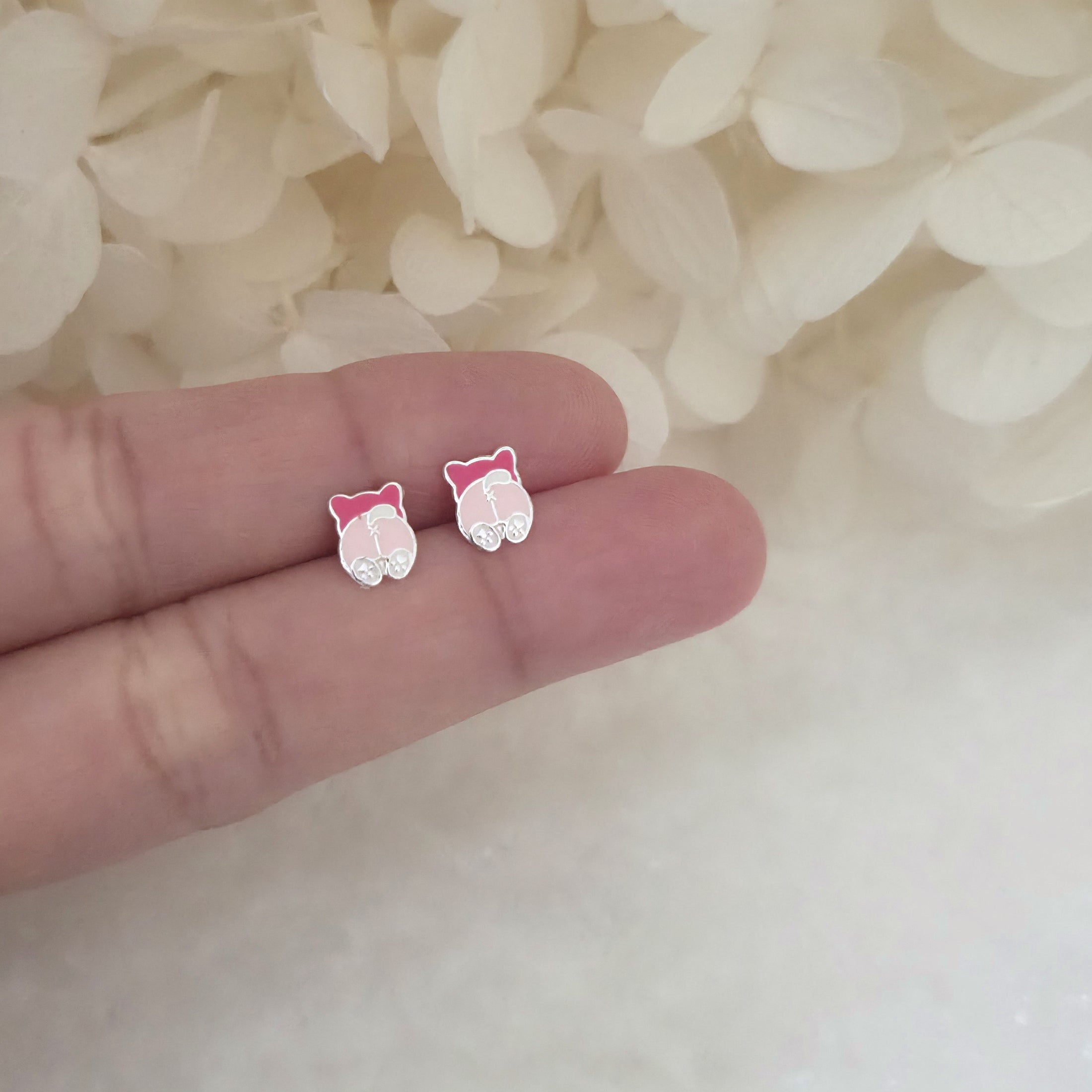 Charming pink dog stud earrings in solid 925 sterling silver, detailed with smooth enamel for a playful look. Perfect for pet lovers or as a sweet gift.