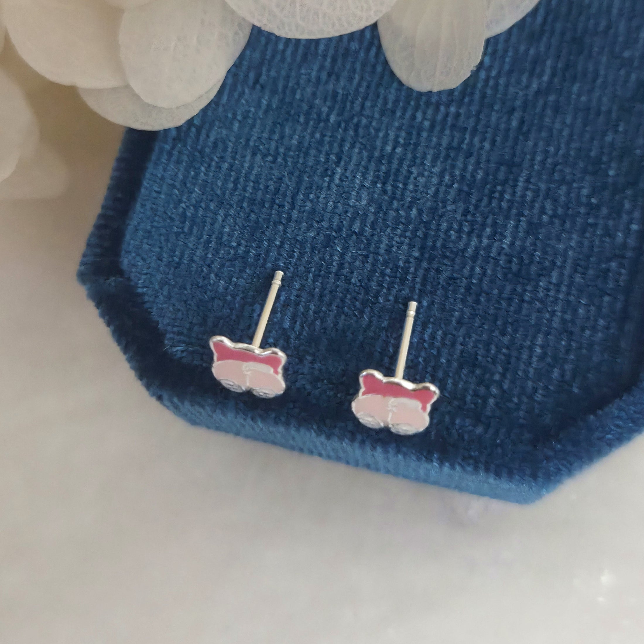 Pink Dog Stud Earrings in 925 Sterling Silver – Solid Silver Pink Puppy Studs with Enamel – Cute Pet Lover Jewelry Gift
