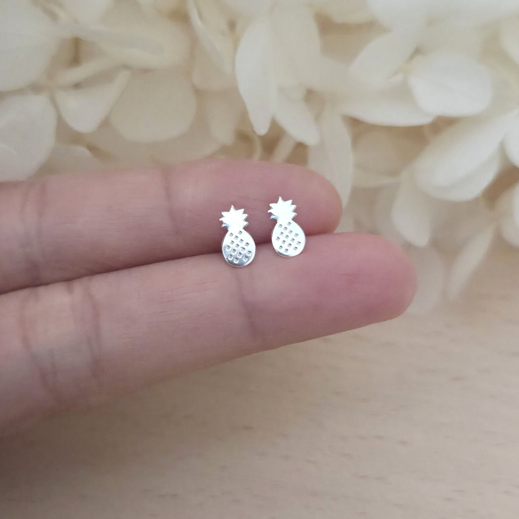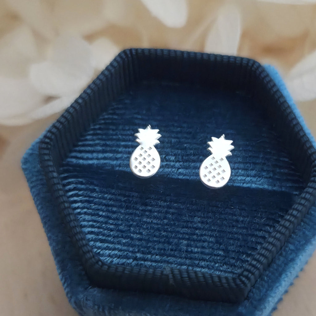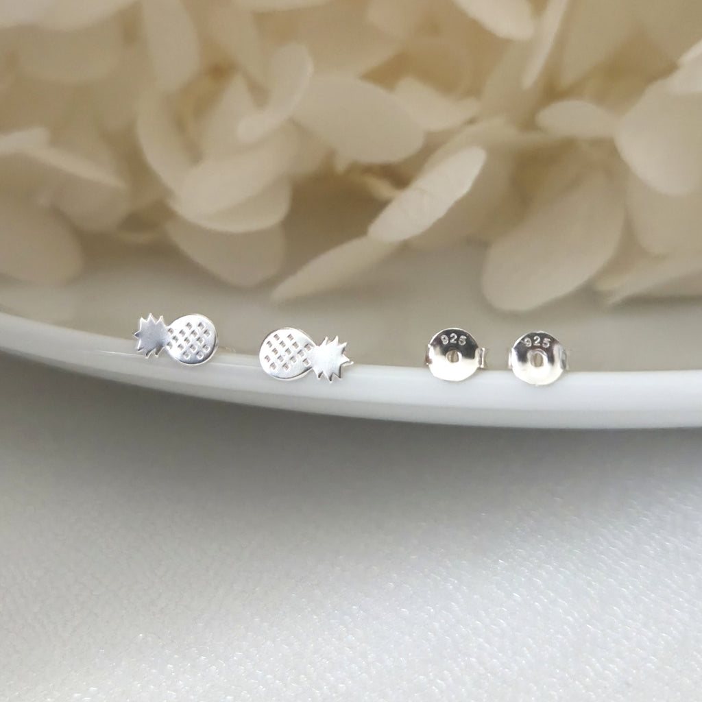 These simple 925 sterling silver pineapple stud earrings feature a clean, playful design. A perfect summer gift for fruit lovers or fans of tropical beach jewelry.