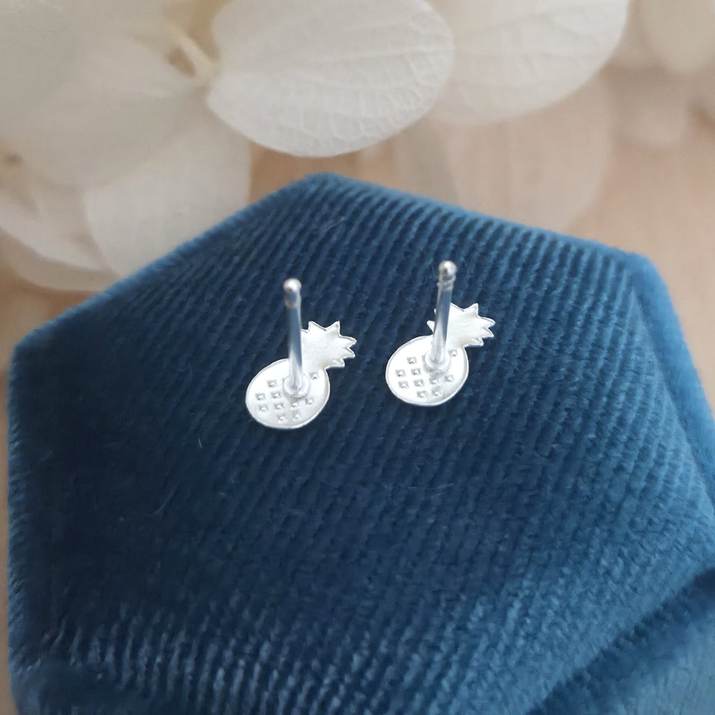 Simple 925 Sterling Silver Pineapple Stud Earrings – Solid Silver Pineapple Fruit Earrings – Tropical Summer Beach Jewelry