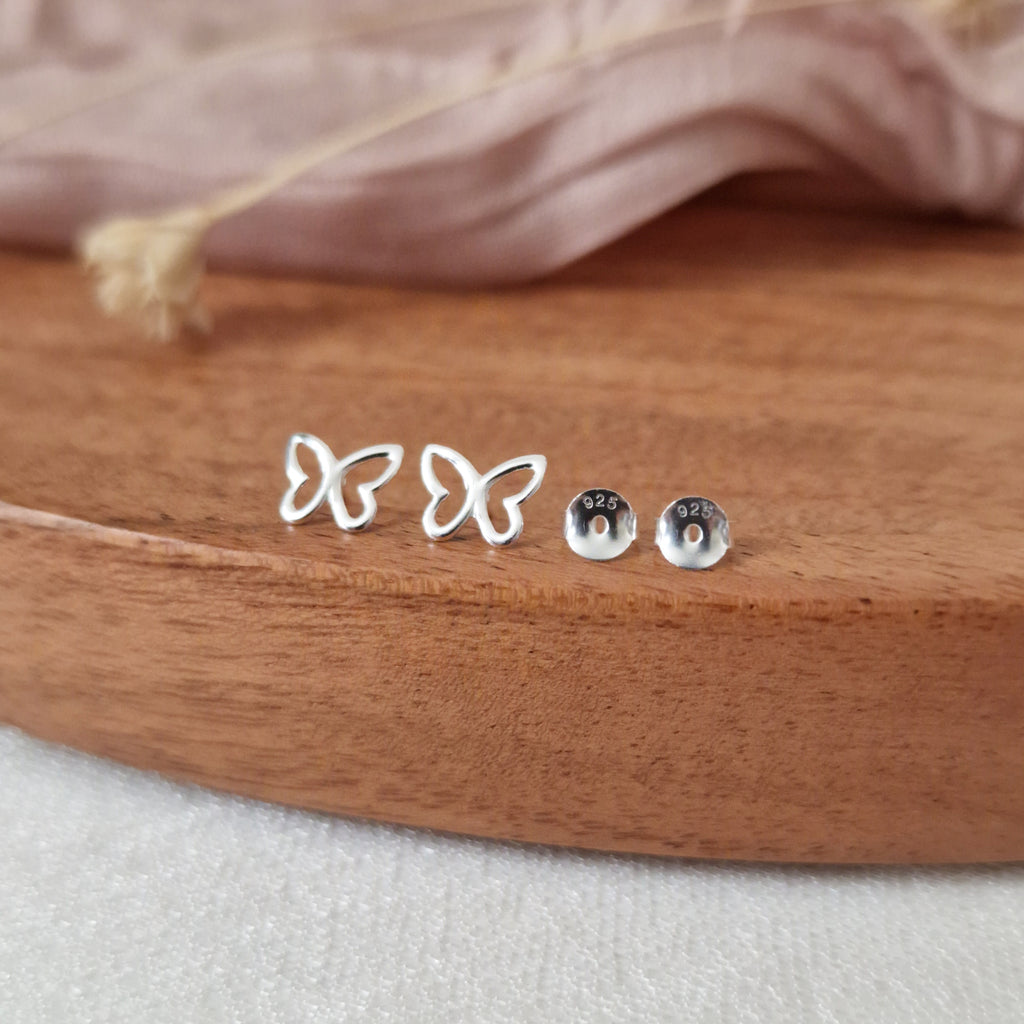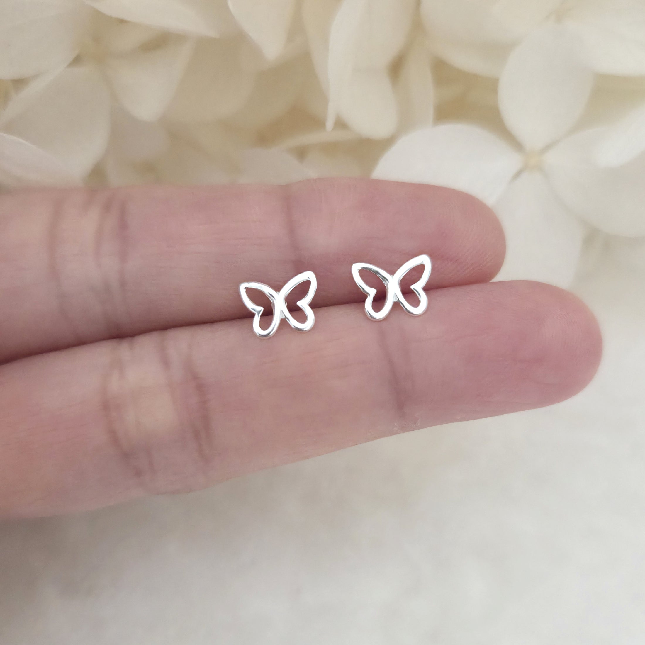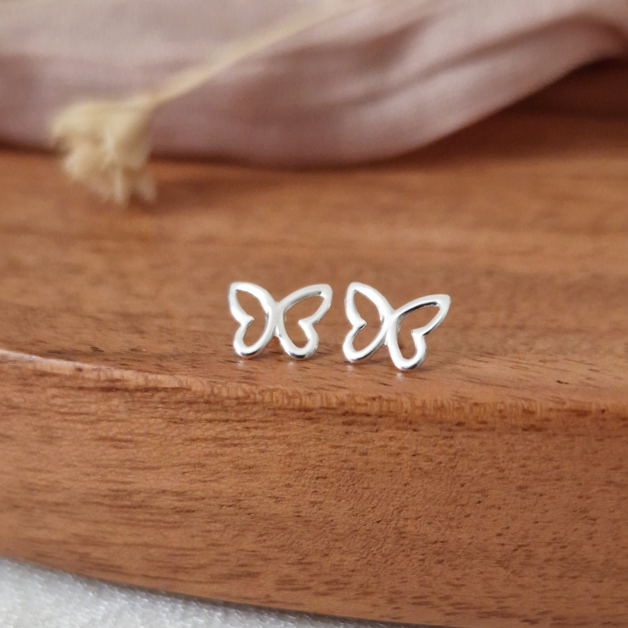 Tiny 925 Sterling Silver Butterfly Stud Earrings – Delicate Minimal Butterfly Studs in Solid Silver