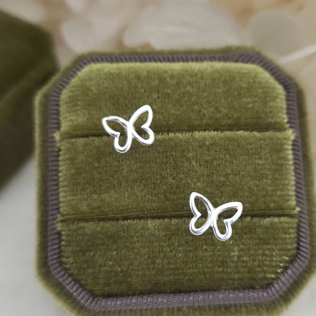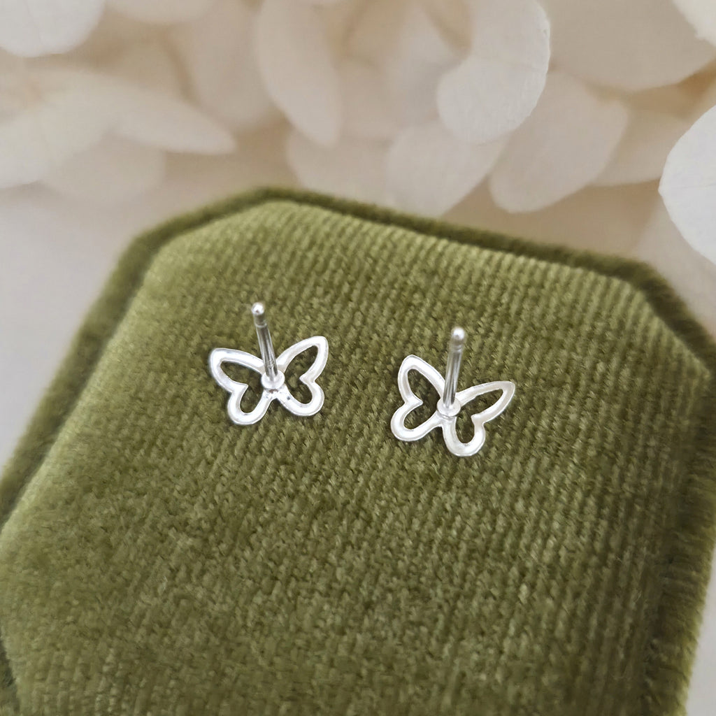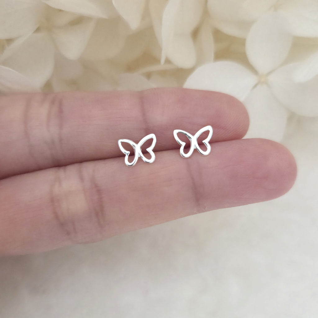 Tiny 925 Sterling Silver Butterfly Stud Earrings – Delicate Minimal Butterfly Studs in Solid Silver