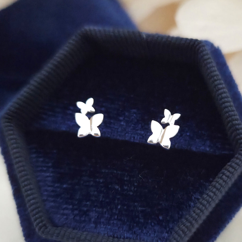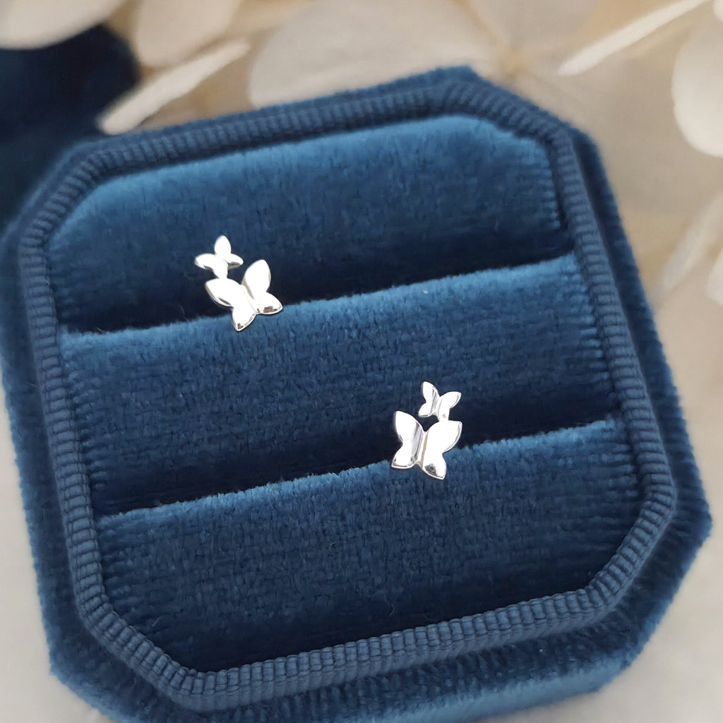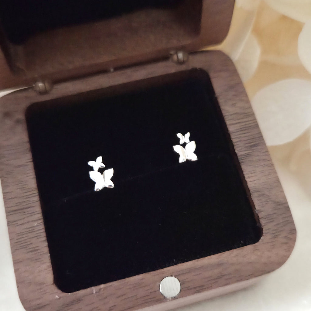These dainty double butterfly studs are crafted in solid 925 sterling silver with a polished minimalist finish. Light and refined, they bring a graceful, nature-inspired charm to your look. Perfect for everyday wear or as a sweet gift for a butterfly lover.