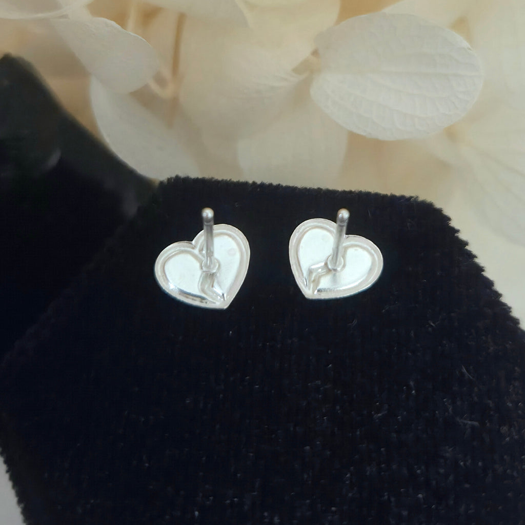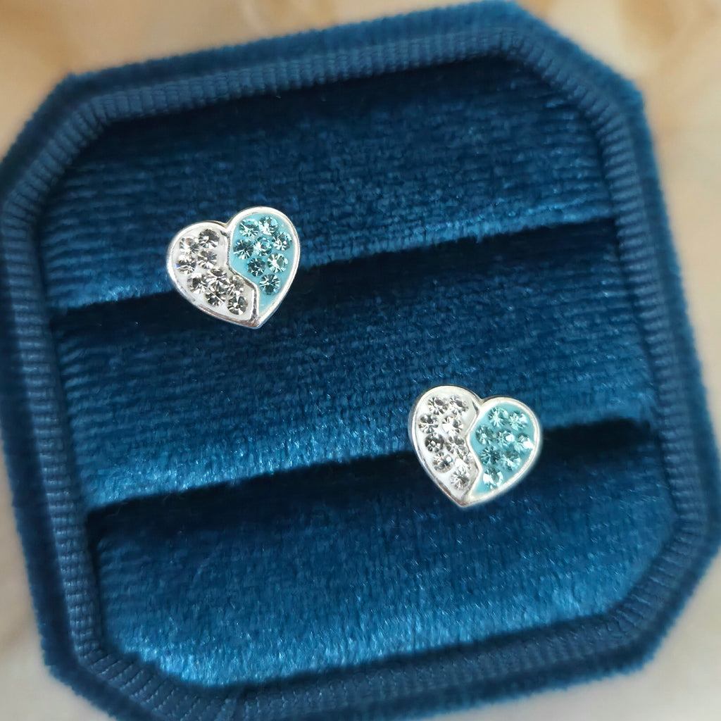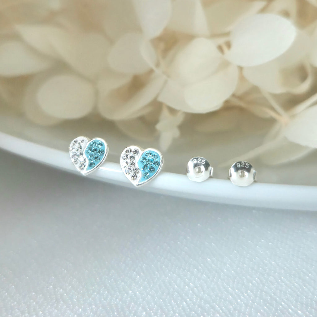 White & Blue Heart Stud Earrings in 925 Sterling Silver – Solid Silver Valentine’s Love Studs with Crystals