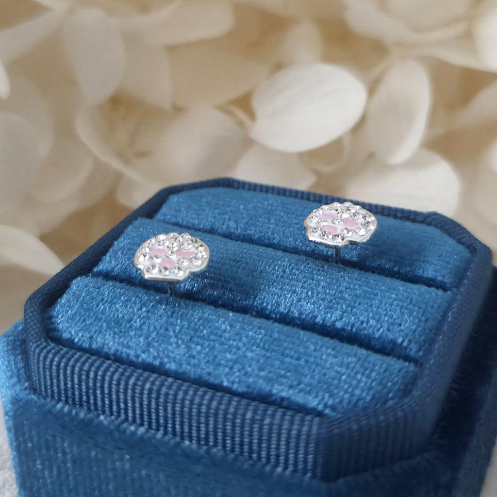 White & Pink Skull Stud Earrings in 925 Sterling Silver – Solid Silver Halloween Studs with Sparkling Crystals